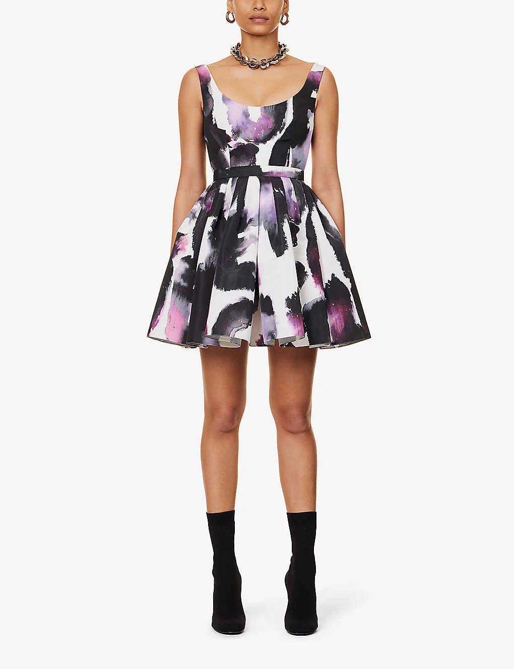 Alexander McQueen Abstract-pattern Flared-hem Woven Mini Dress
