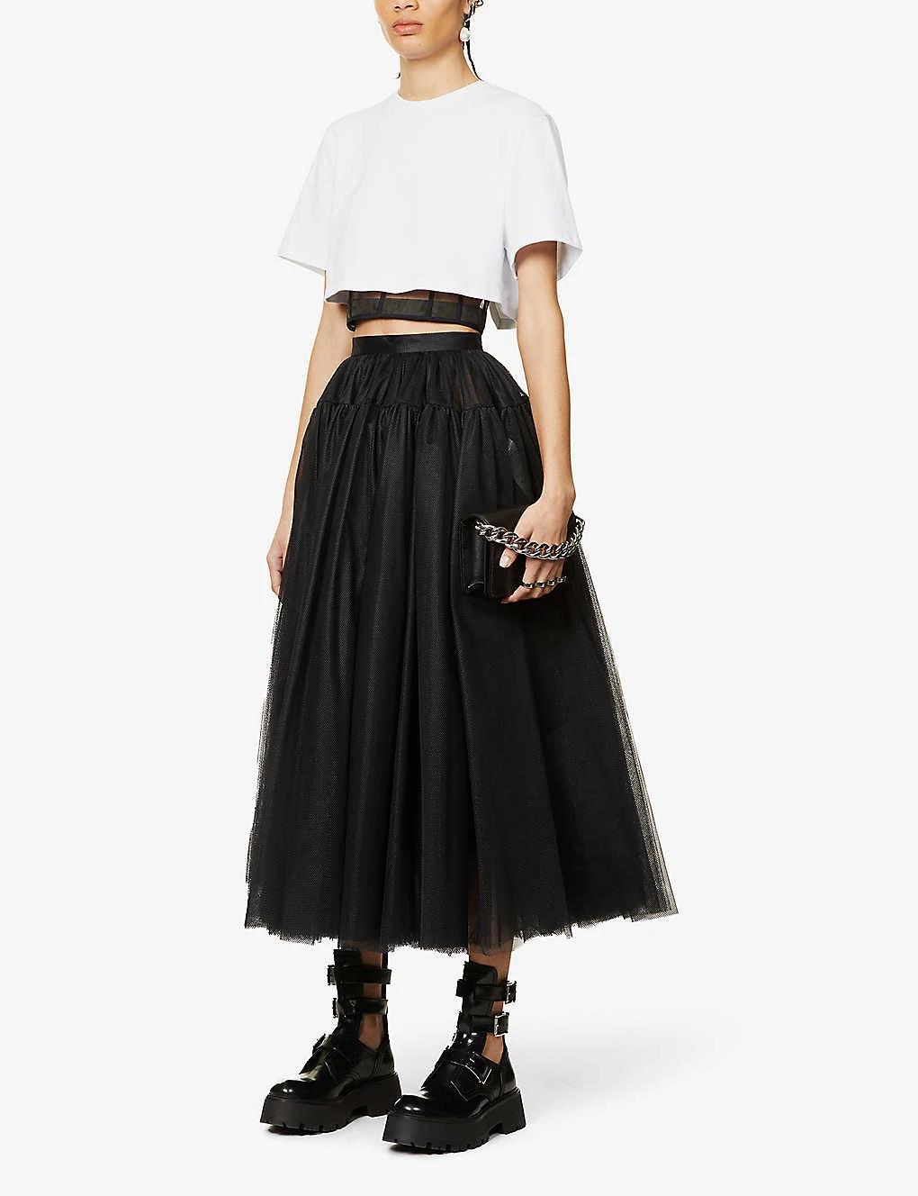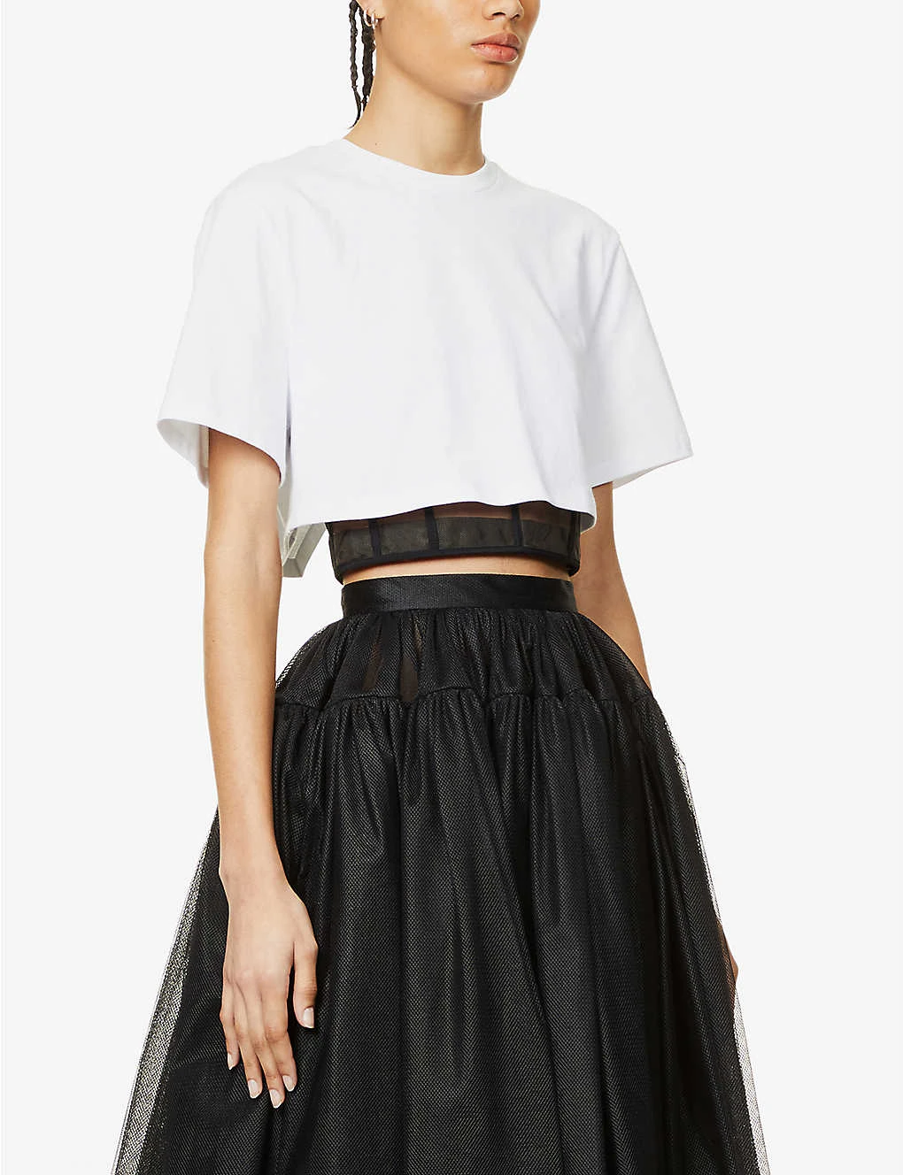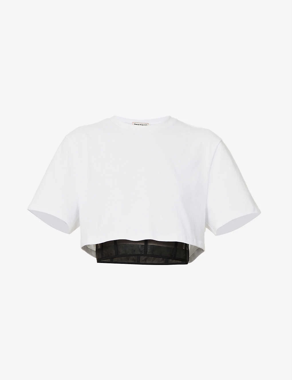 Alexander McQueen Cropped Bustier Cotton-jersey And Mesh T-shirt