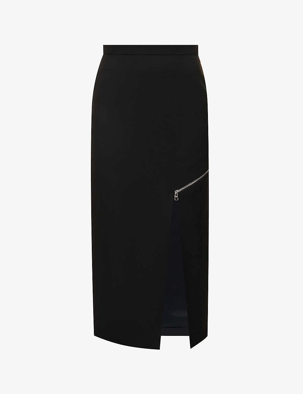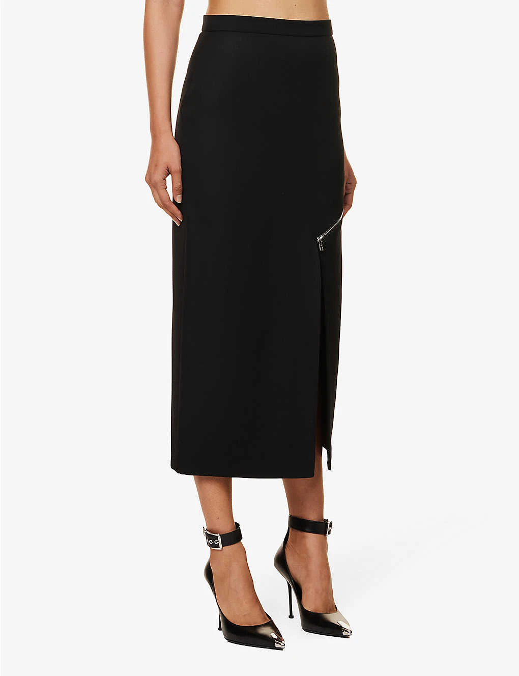 Alexander McQueen Split-hem Zip-embellished Wool Midi Skirt