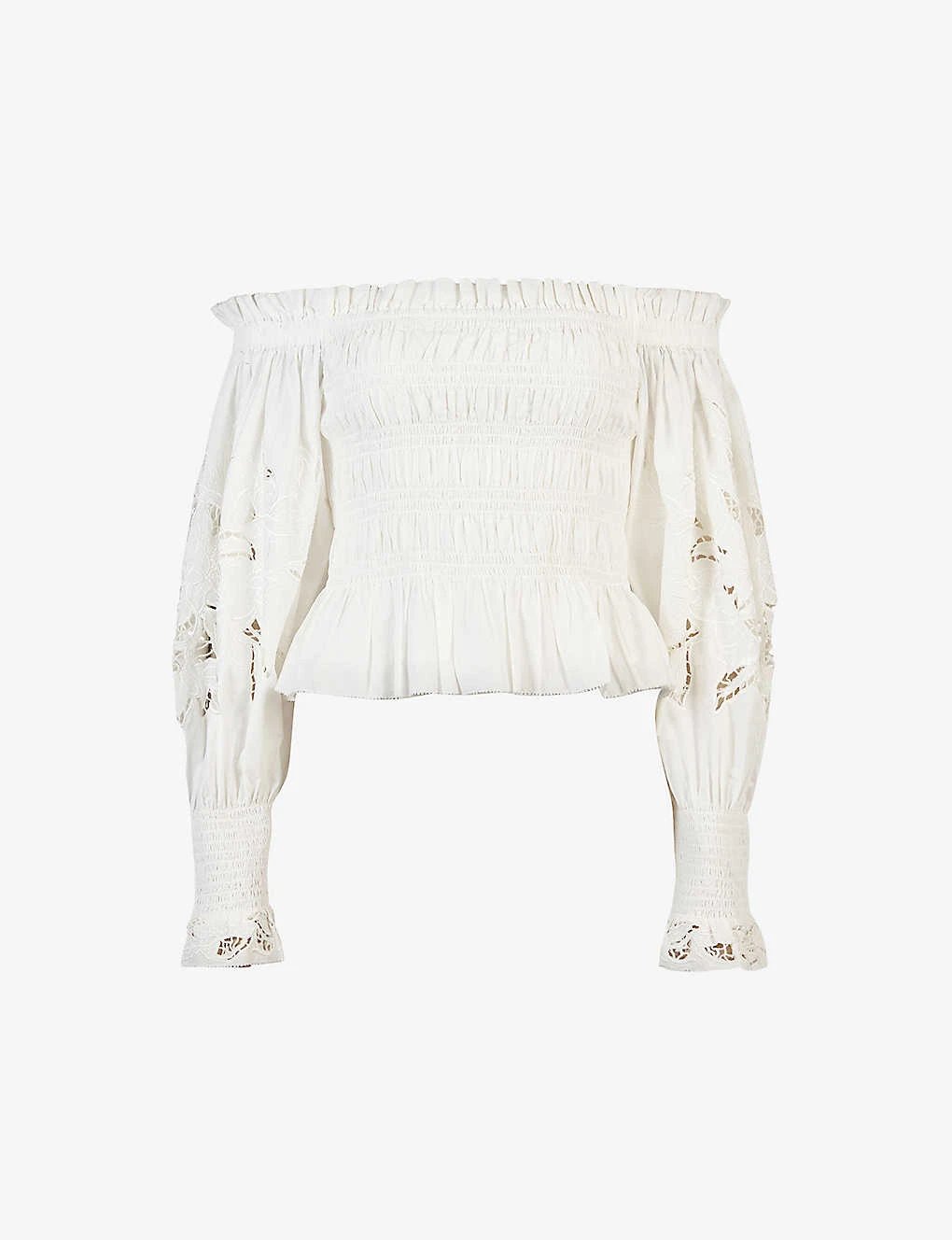 Be the first to review “AllSaints Lara Off-the-shoulder Broderie-embellished Regular-fit Cotton Top” Cancel reply