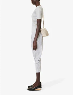- Regular fit, round neckline, sleeveless, V-cut at neckline, all-over textured pleat pattern