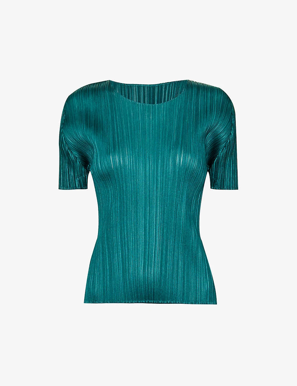 - Slim fit, round neck, short sleeves, all-over technical pleated texture, straight hem