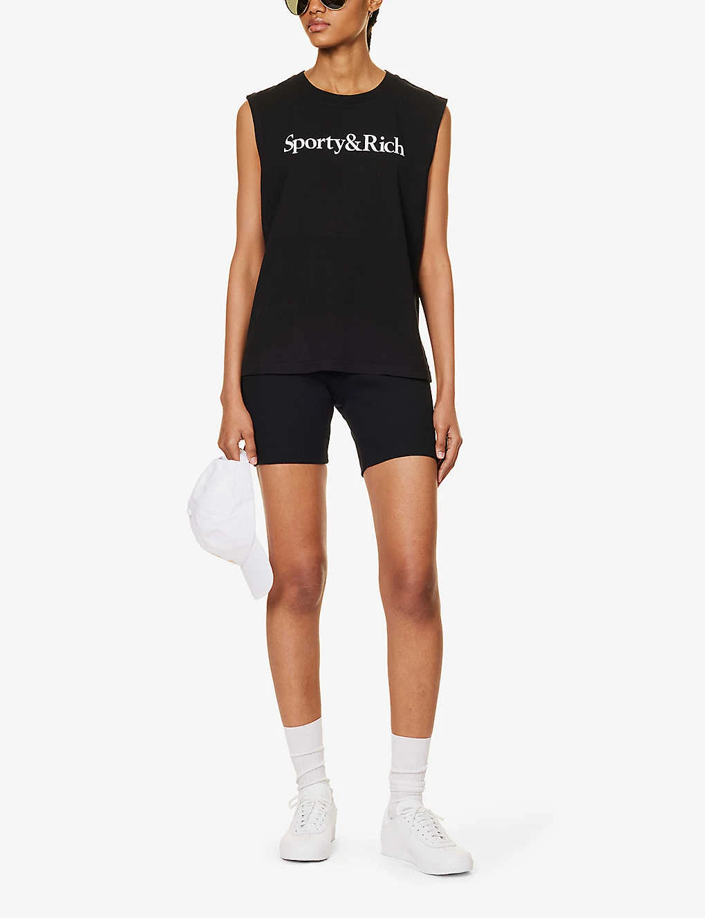 Brand-print Sleeveless Regular-fit Cotton T-shirt