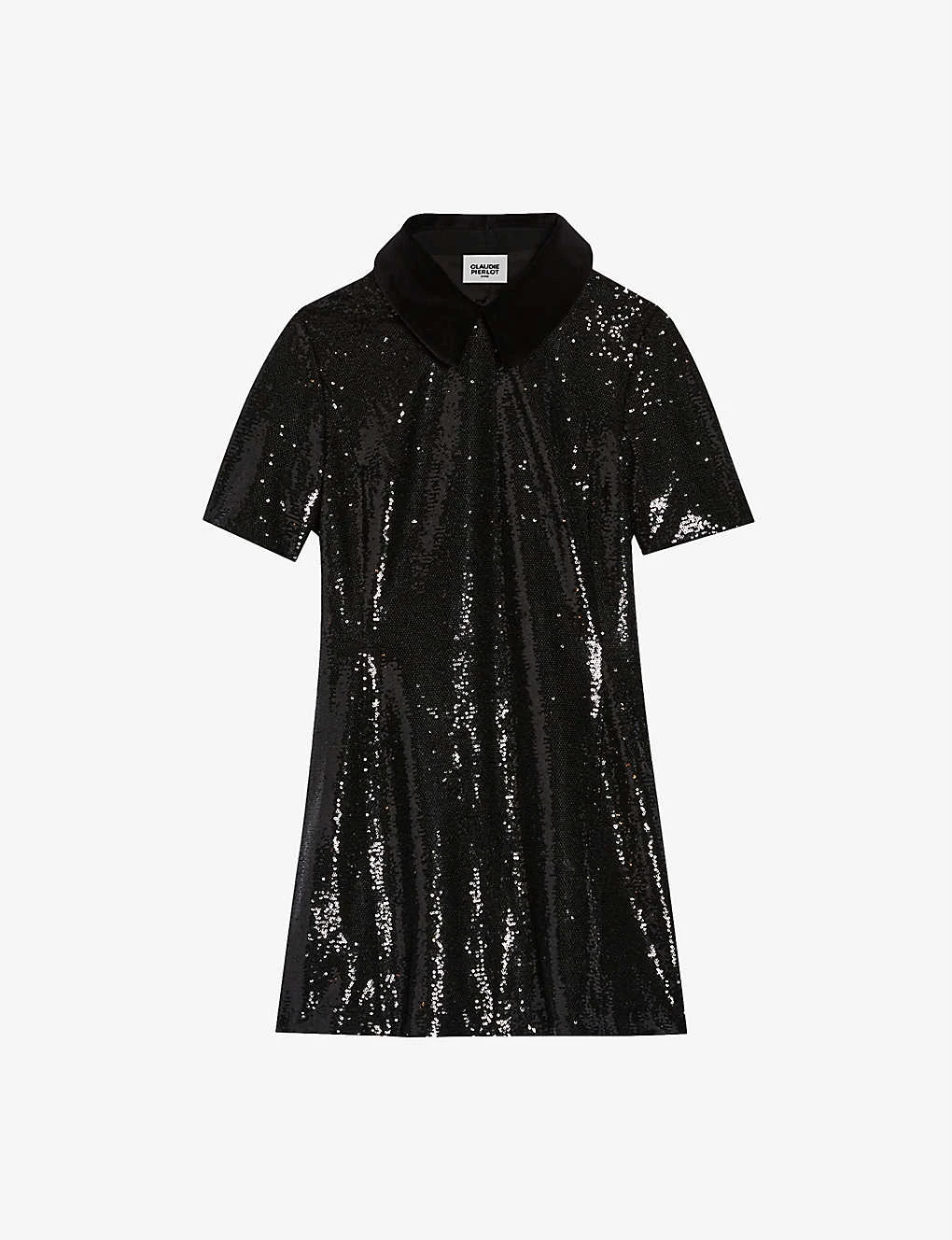 CLAUDIE PIERLOT Ramis Velvet-collar Sequin-embellished Mini Dress