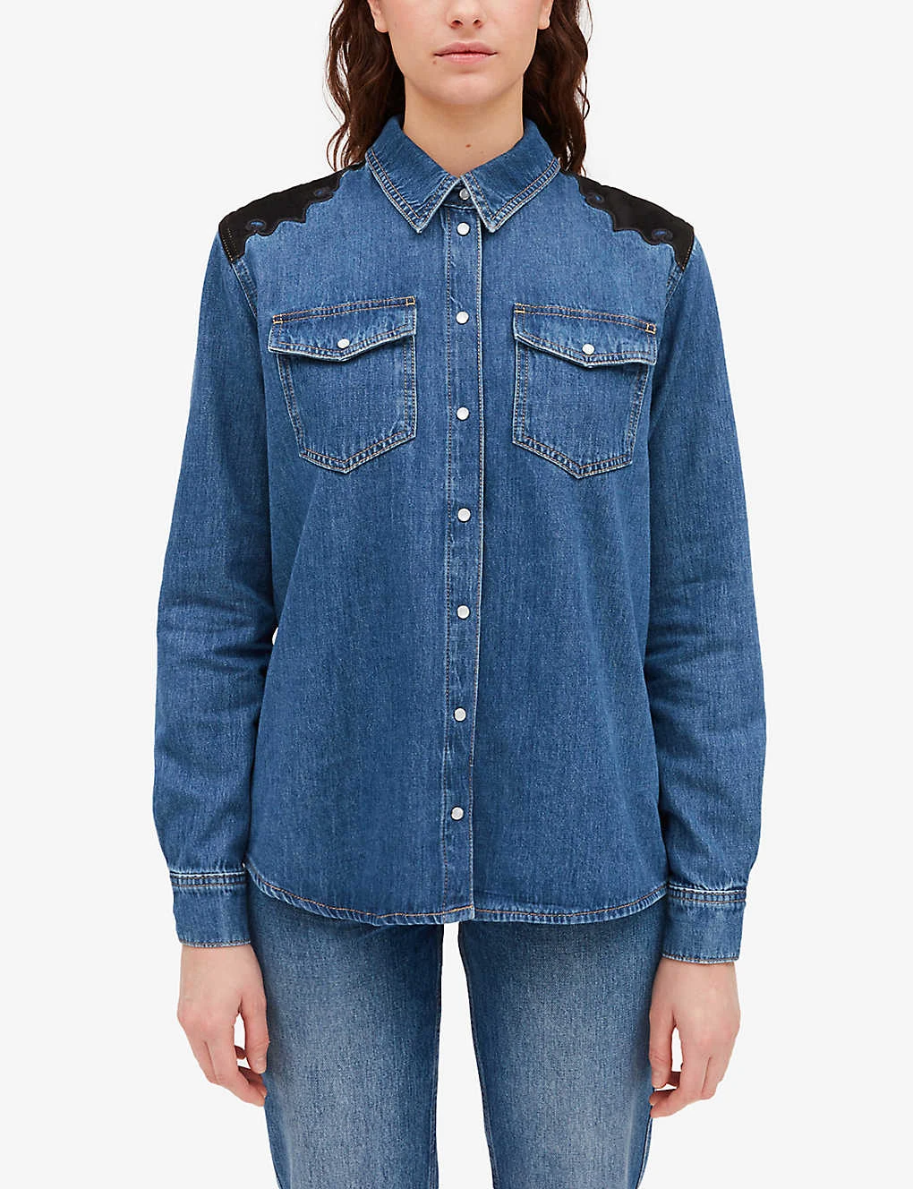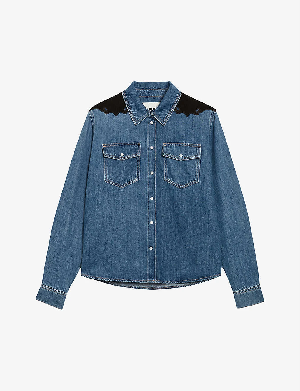 CLAUDIE PIERLOT Shoulder-patch Denim Shirt