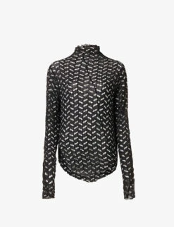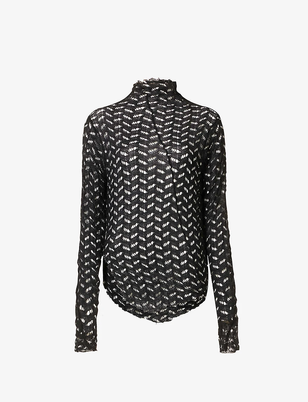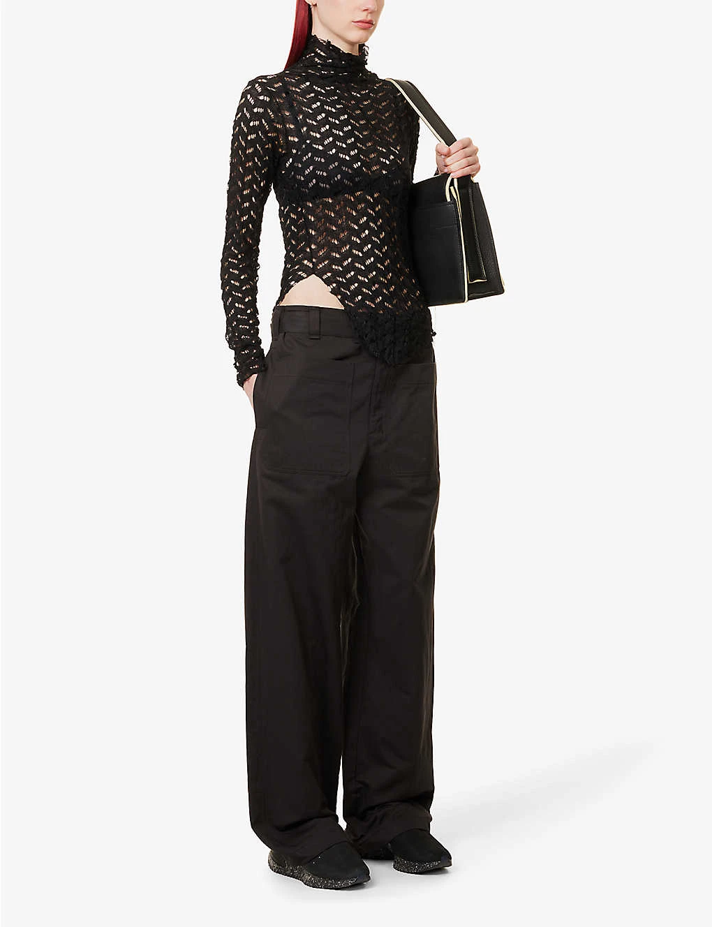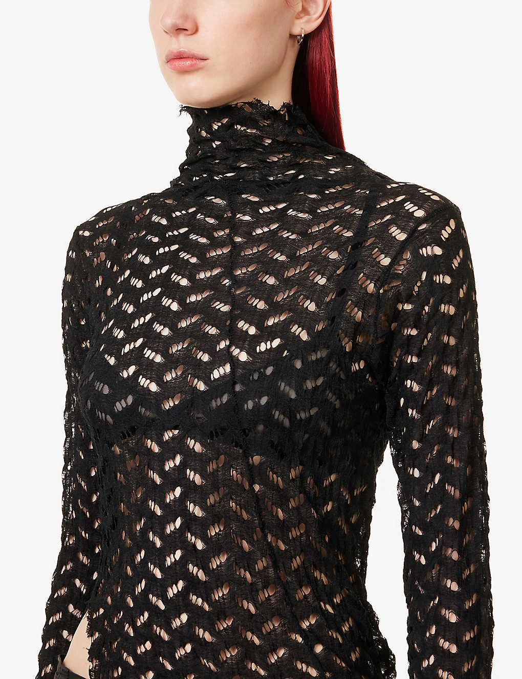 - Slim fit, turtleneck, long sleeves, semi-sheer, fine knit, all-over cut-out panels