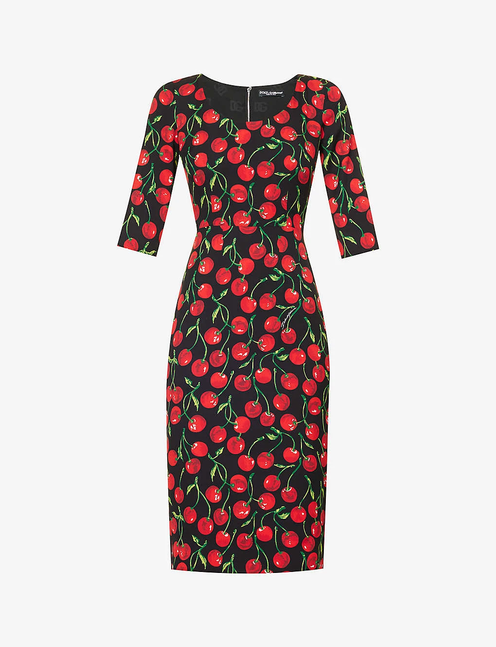 Dolce & Gabbana Cherry-print Silk-blend Midi Dress