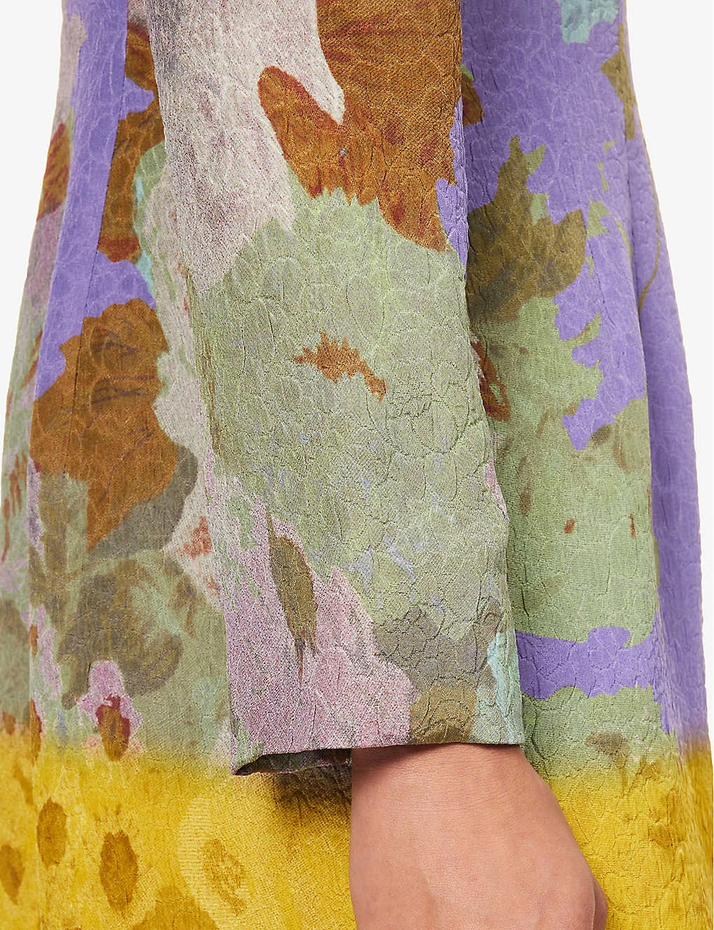 Dries Van Noten Floral-print Round-neck Silk-blend Midi Dress