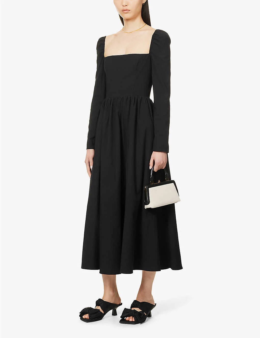 Elly Sweetheart-neck Stretch-organic Cotton Midi Dress