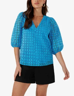 - Regular fit, high-rise, elasticated waist, split back, all-over floral tile print