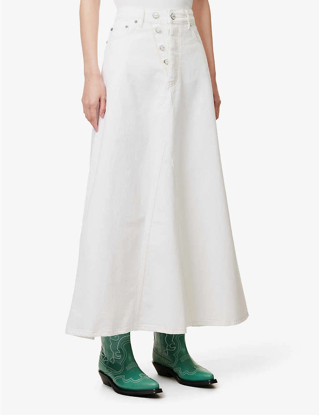 Be the first to review “Ganni Mid-rise Logo-appliqué Organic-denim Maxi Skirt” Cancel reply