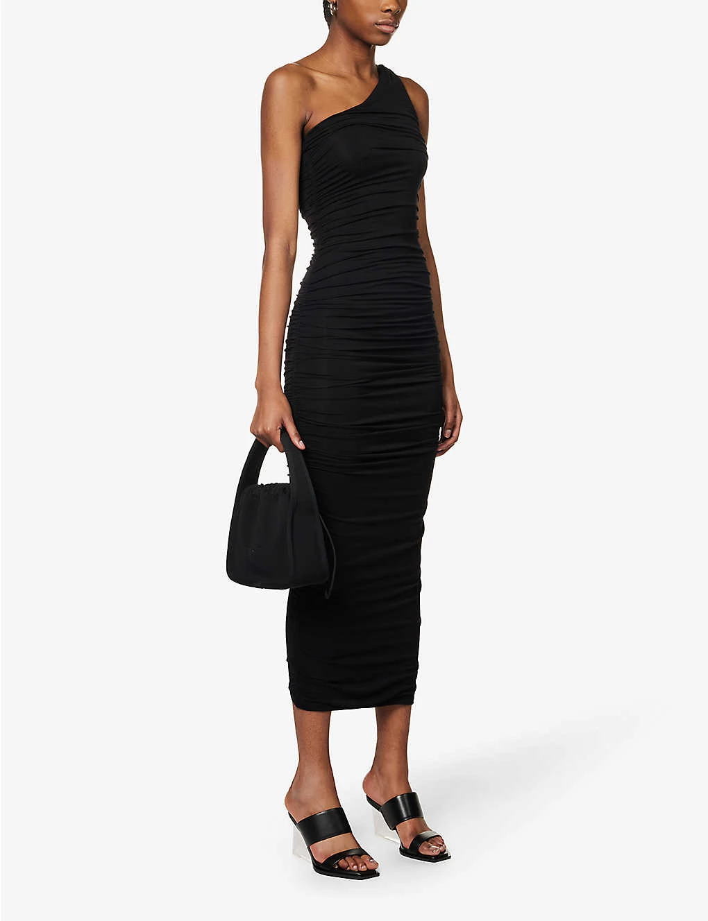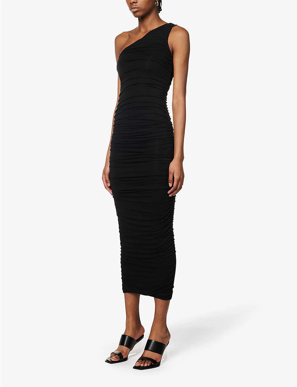GOOD AMERICAN Ruched One-shoulder Stretch-rayon Maxi Dress