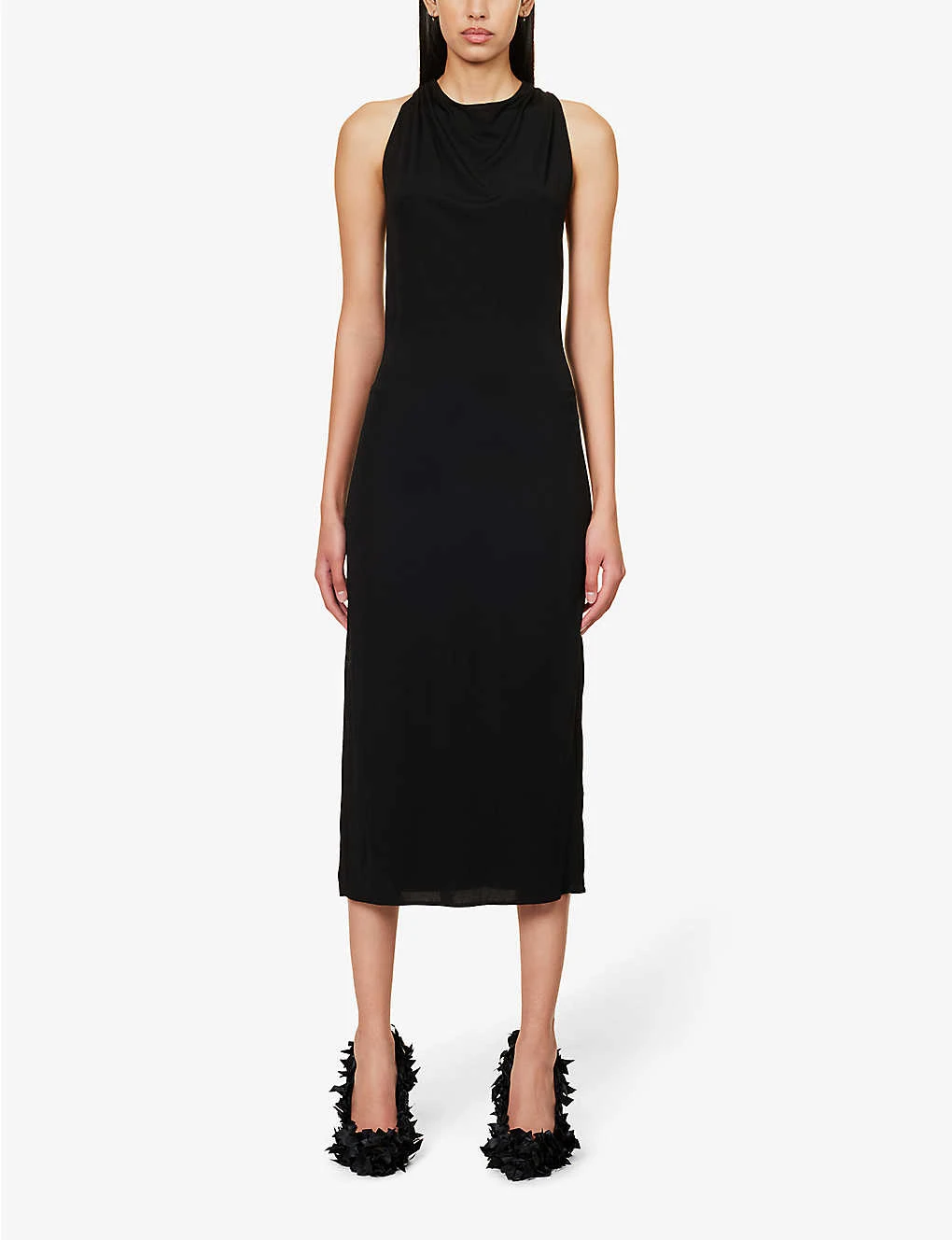 Helmut Lang Twisted-back Split-hem Woven Maxi Dress