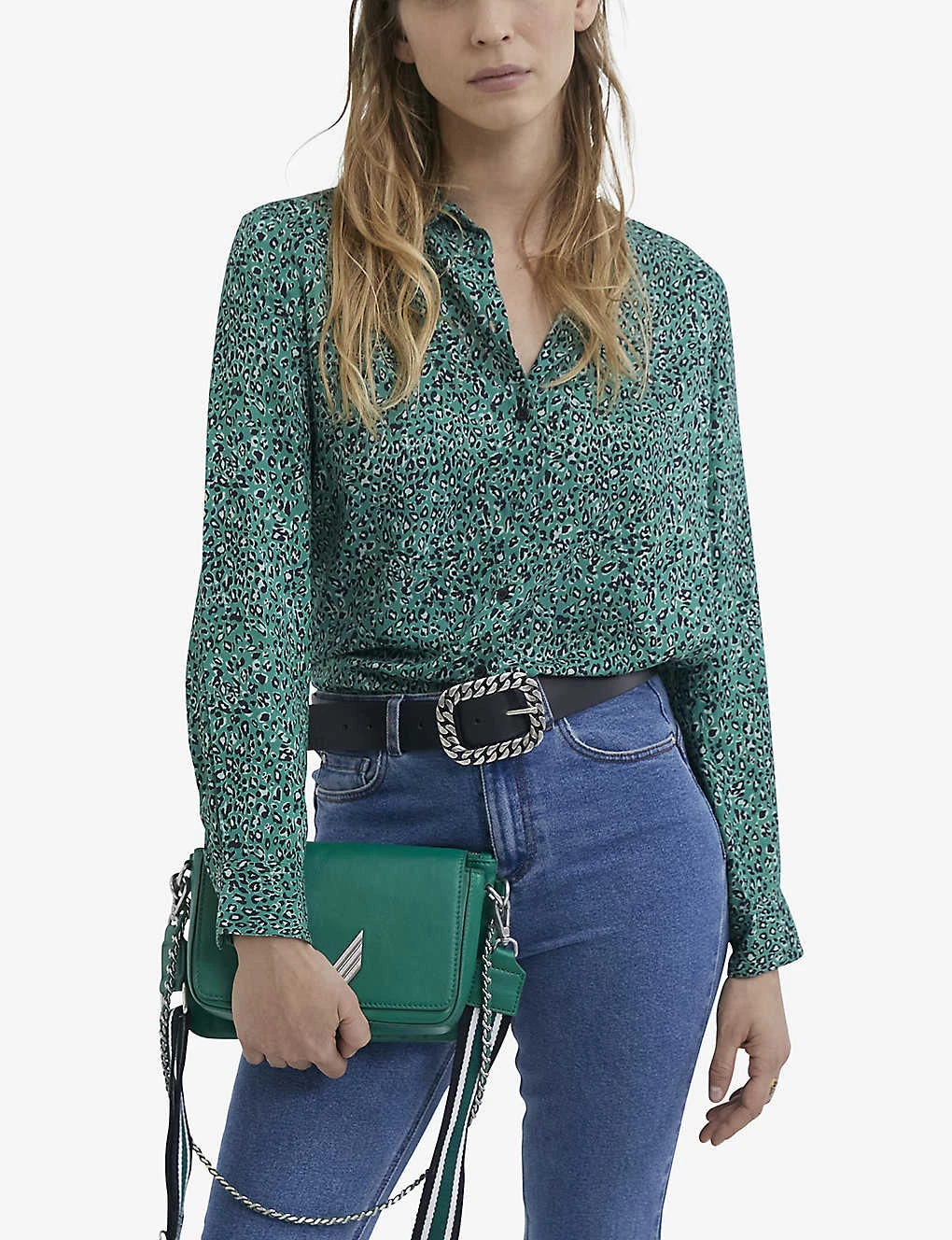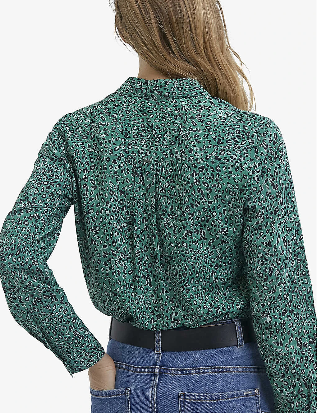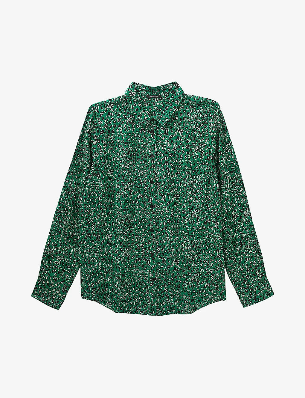 - Straight fit, shirt collar, long sleeves, button cuffs, all-over leopard print, straight hem