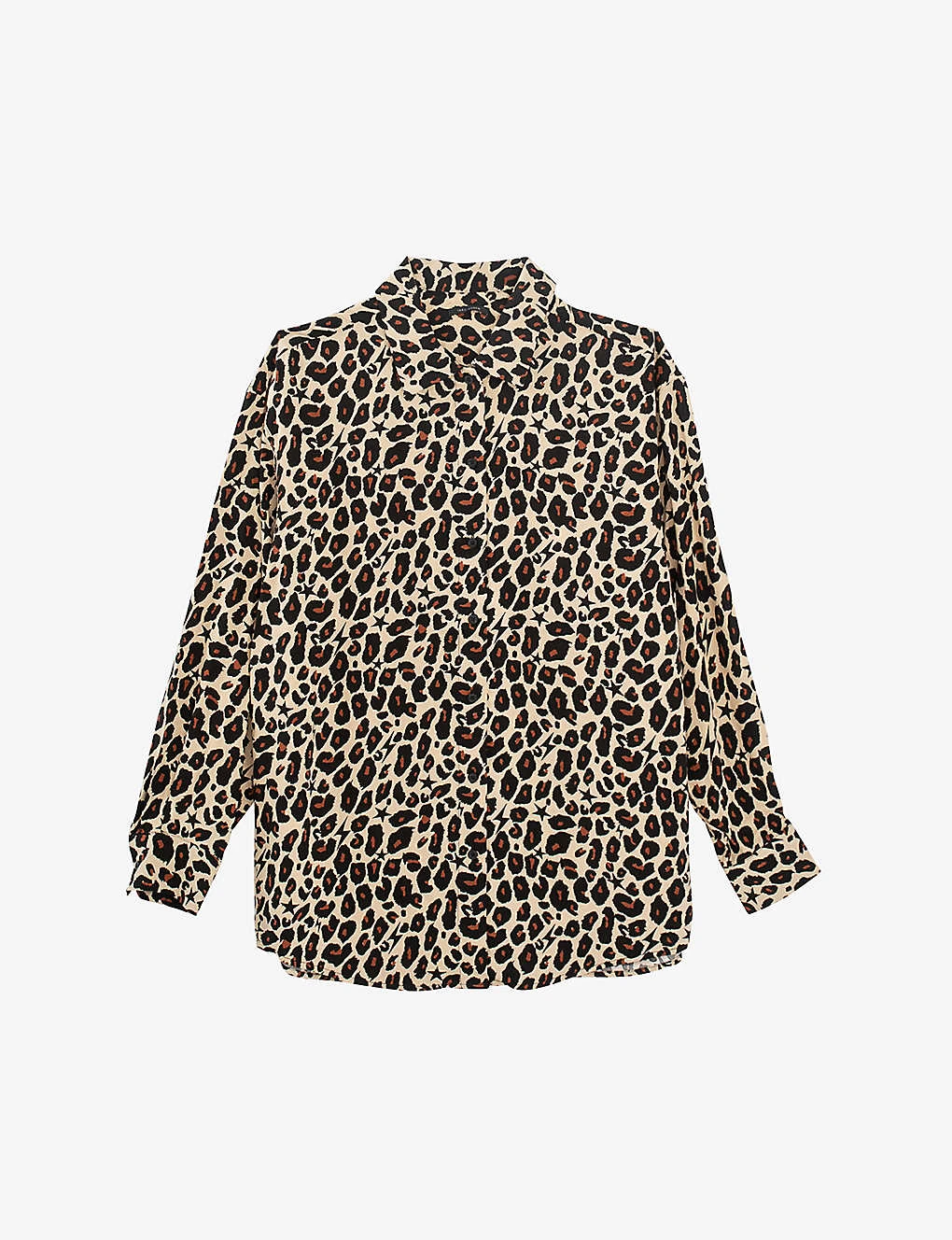 - Collar, dropped shoulders, long sleeves, buttoned cuffs, all-over leopard and star print, oversized, button fastening