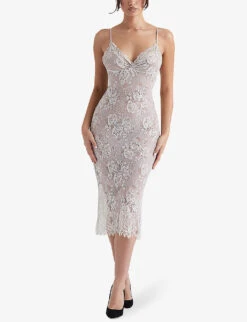 - Adjustable waist ties, all-over floral devore embroidery, asuemtric hem, fully lined
