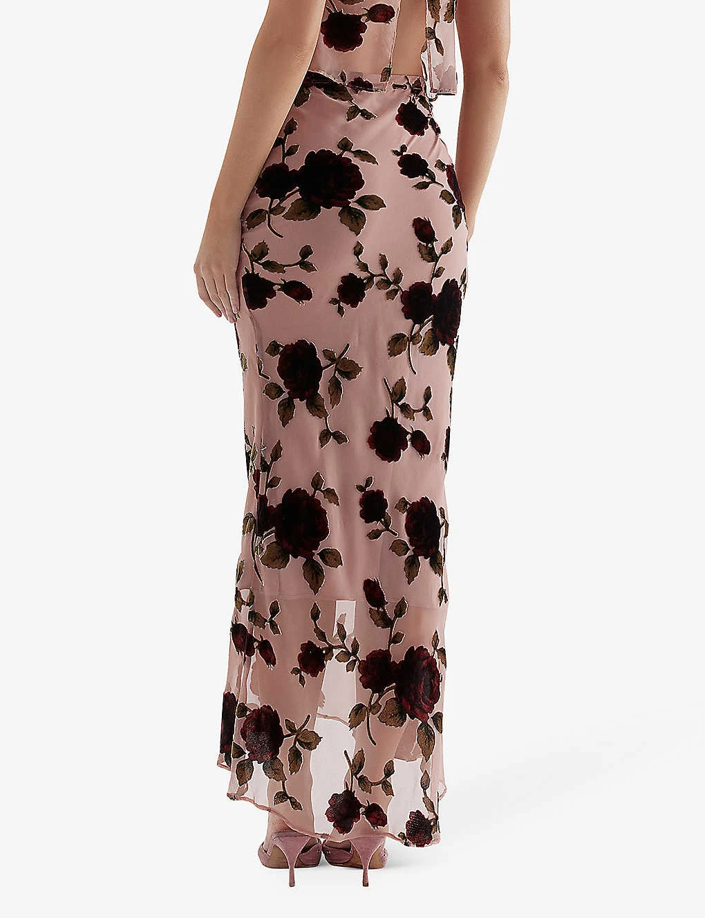 Imaan Floral Velvet Devore-embroidered Stretch-woven Maxi Skirt