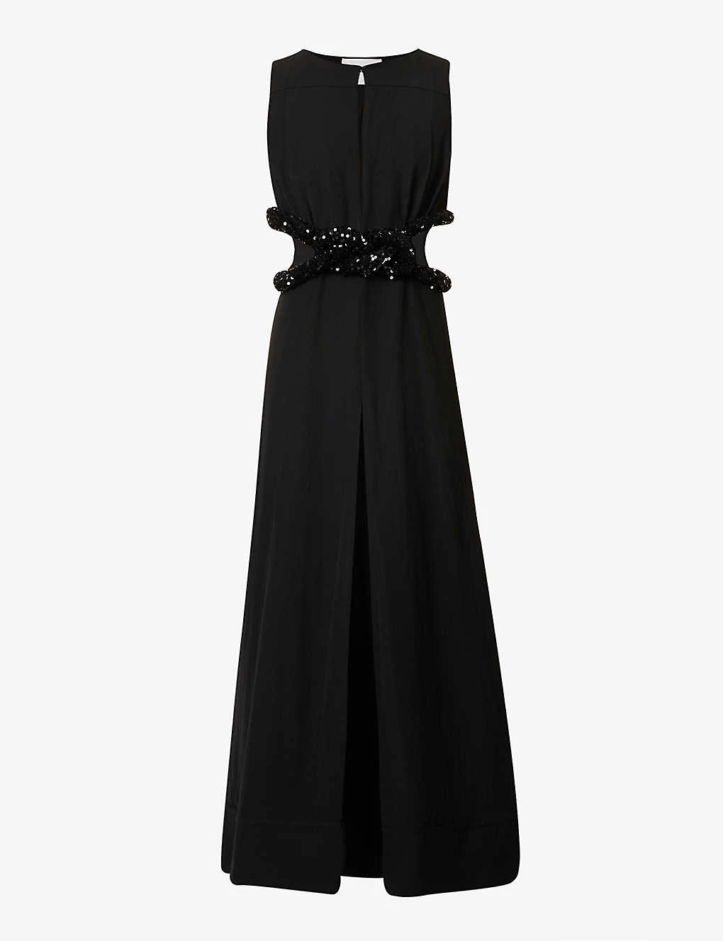 - Regular fit, round neckline, sleeveless, cut-out at front, twisted embellished design at front, cut-outs at sides, pleat at front, lined