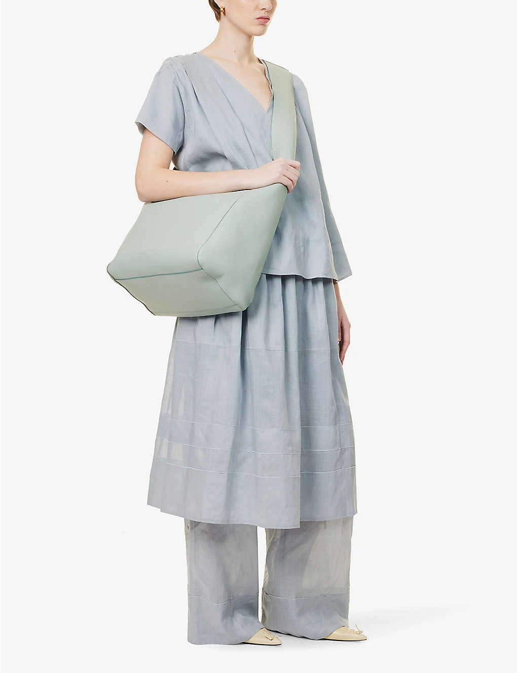 - Model is 5ft 11in/1.80m and wears a size UK 8