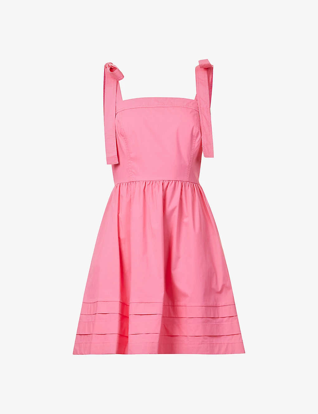 - Regular fit, square neckline, sleeveless, self-tie straps, two slip pockets at front, flared hem, lined