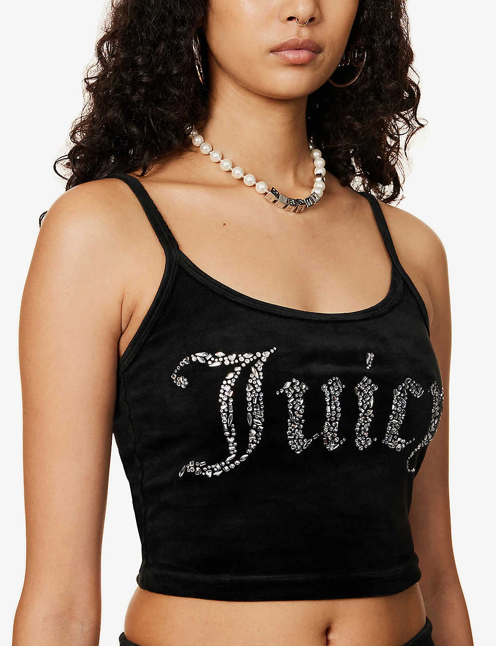 Juicy Couture Scoop-neck Brand-embellished Velour Vest Top