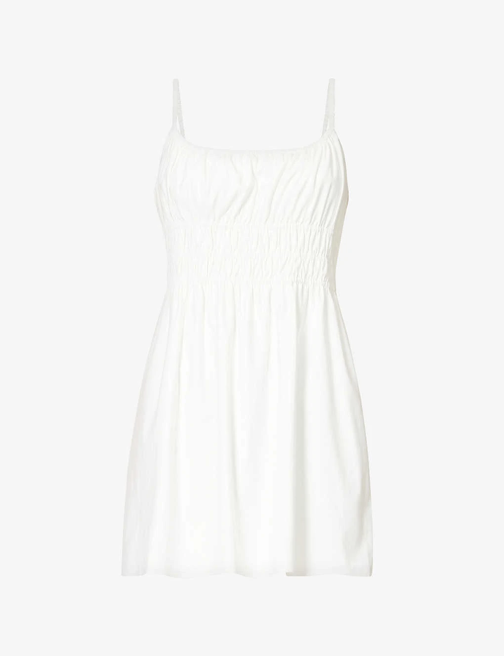 Kathleen Gathered Organic-cotton Blend Mini Dress