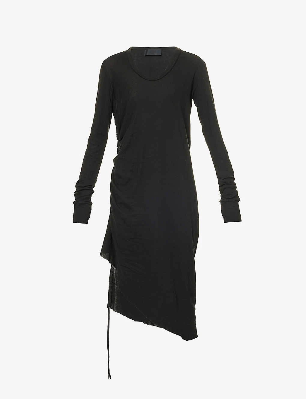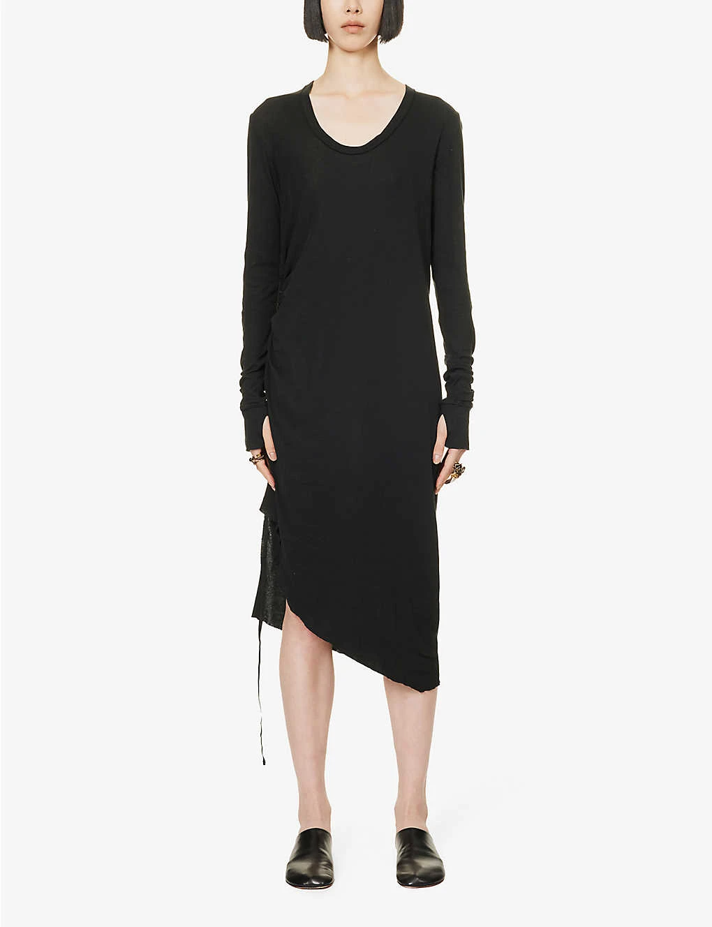 Long-sleeved Scoop-neck Cotton Midi Dress