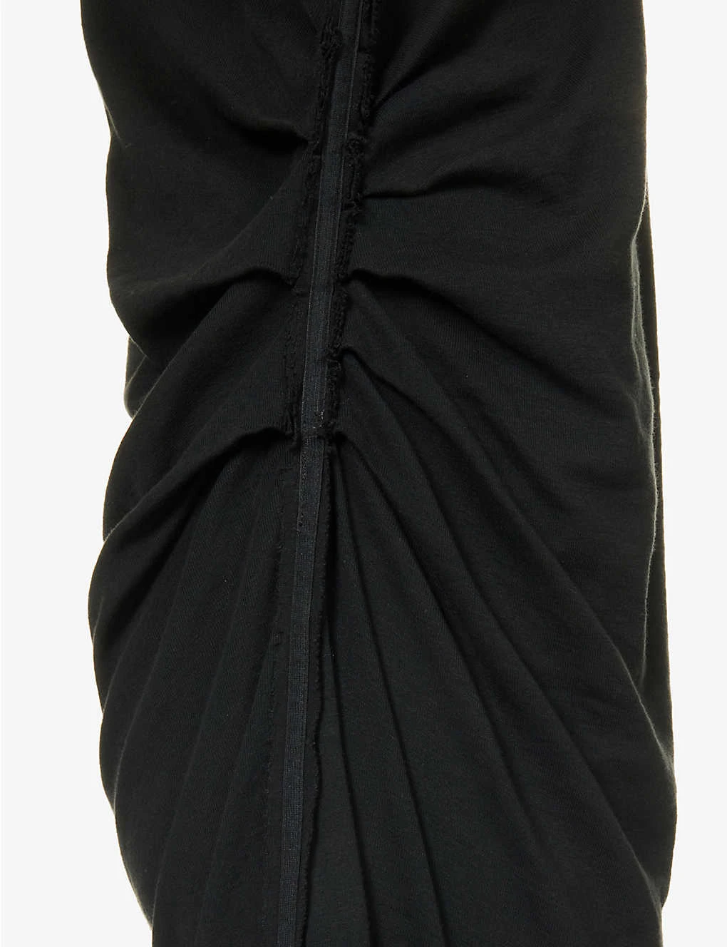 - Regular fit, scoop neckline, long sleeves, pin-tucked pleats at sides, asymmetric hem, raw trims