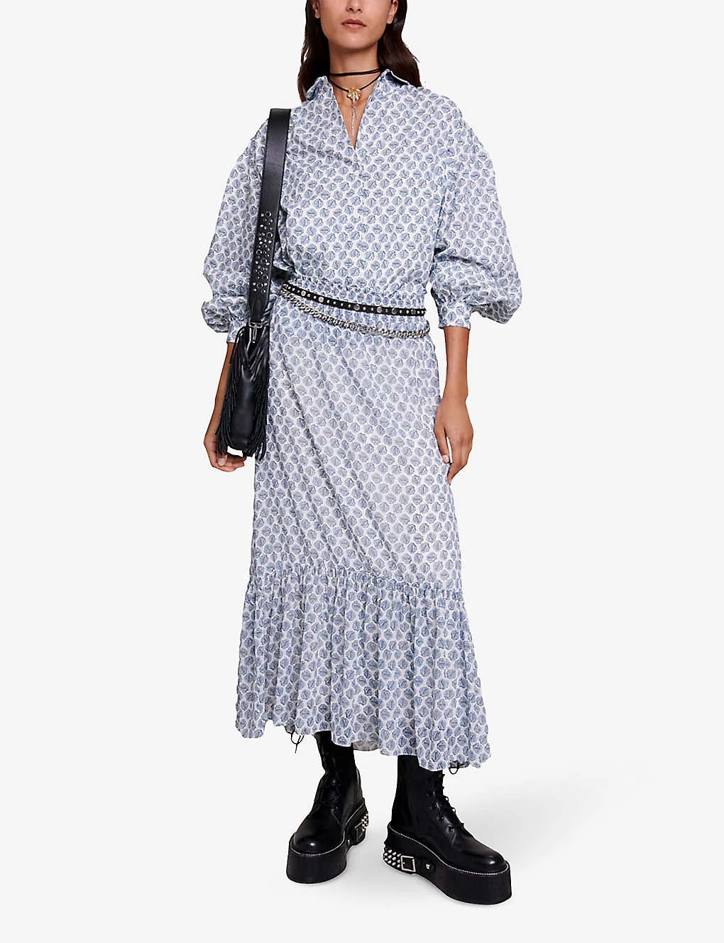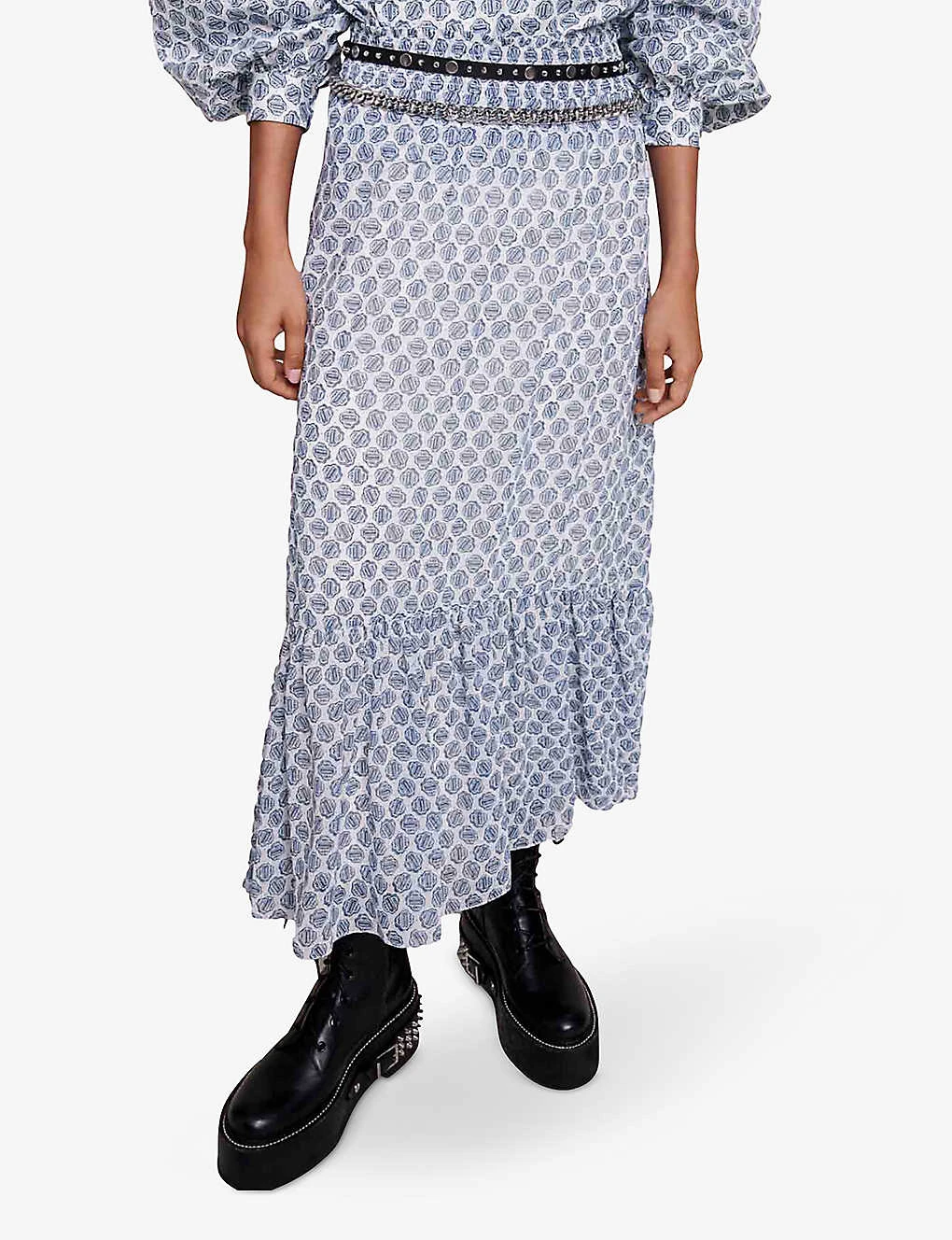 Be the first to review “Maje Jachelona Monogram-print Ruffle-trim Woven Midi Skirt” Cancel reply