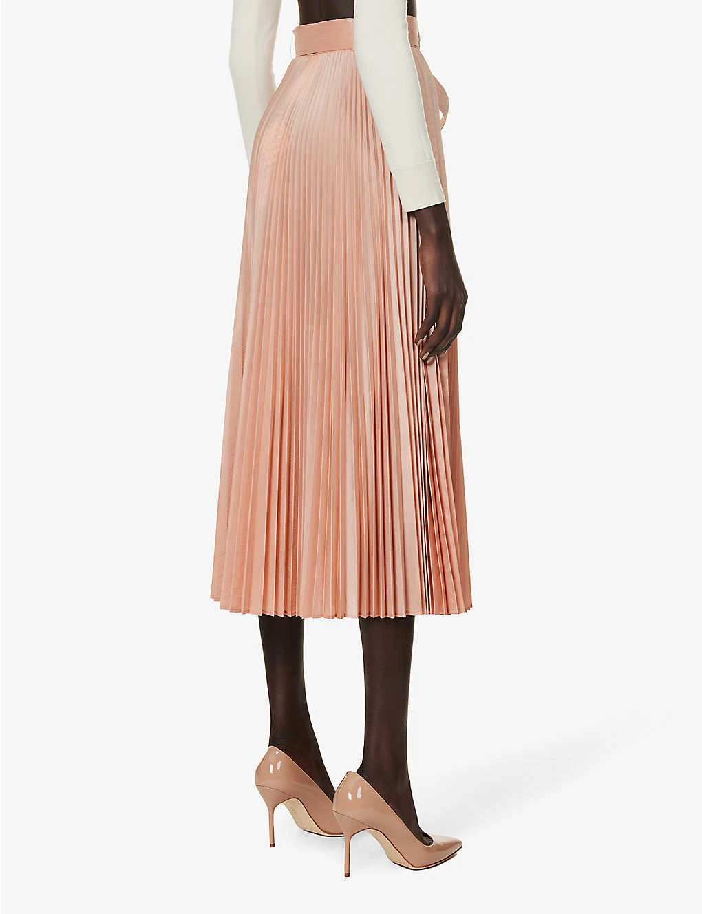 - Regular fit, A-line shape, mid-waist, belt loops, removable belt, all over pleated, all over satin texture