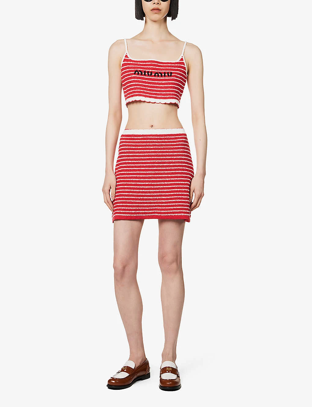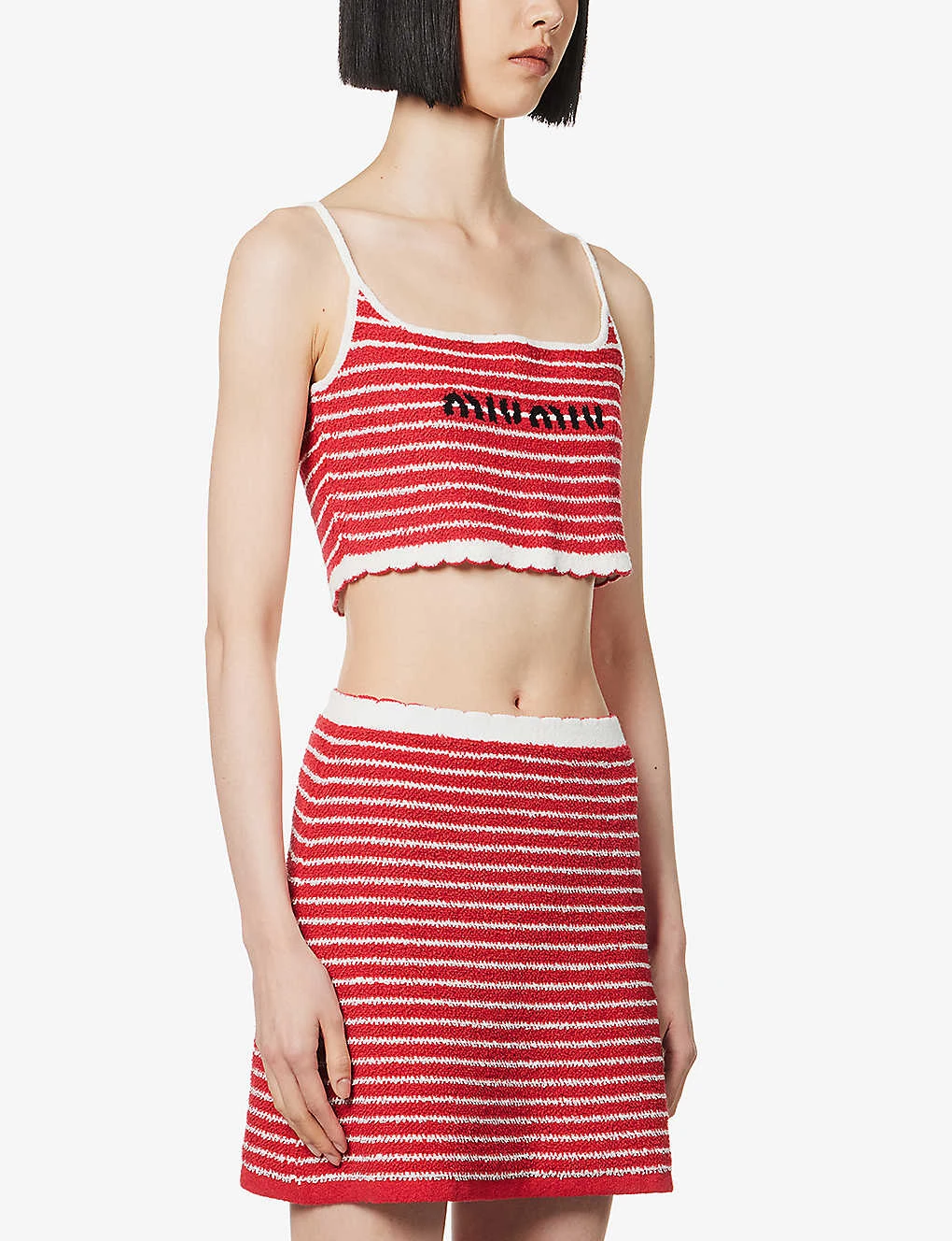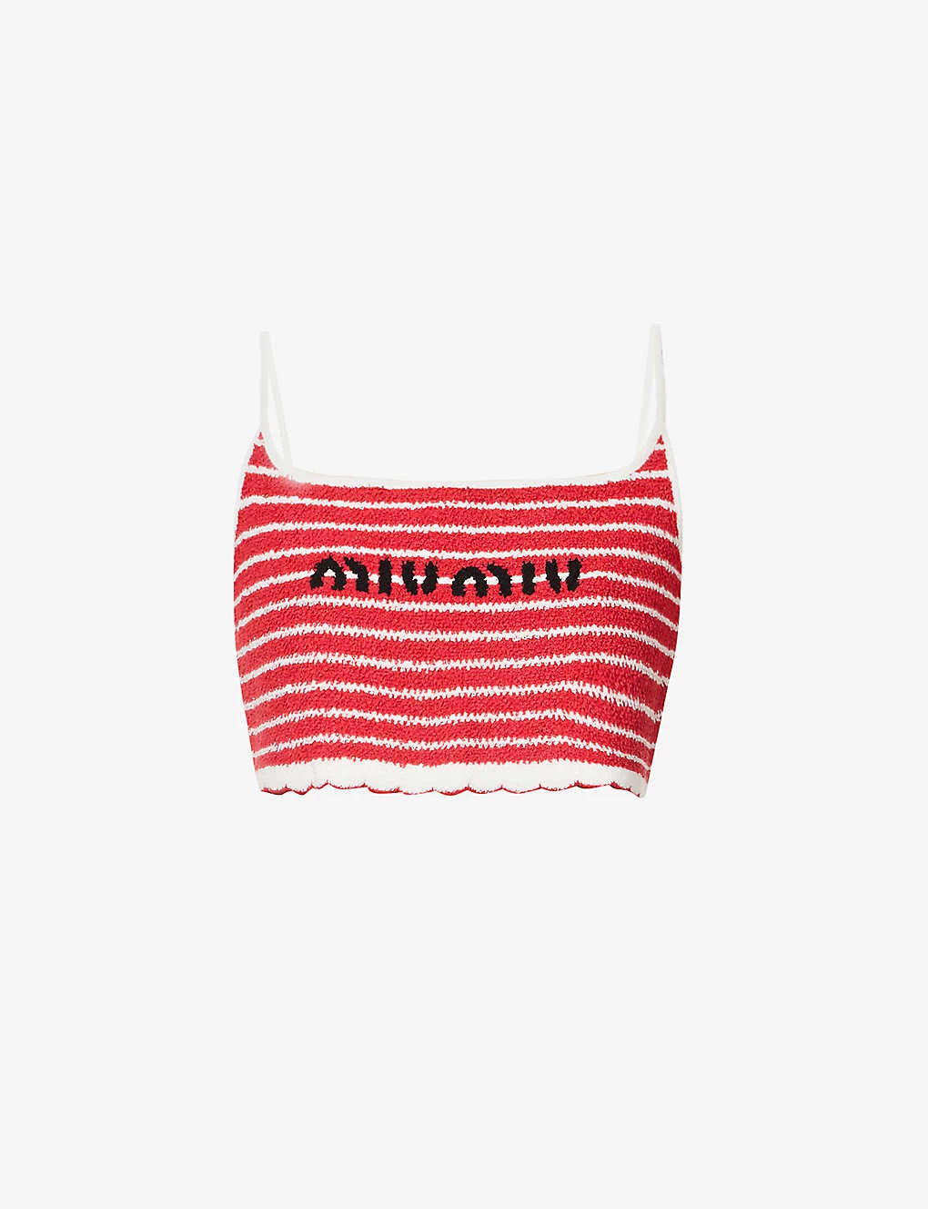 Be the first to review “Miu Miu Logo-embroidered Striped Cotton-blend Top” Cancel reply