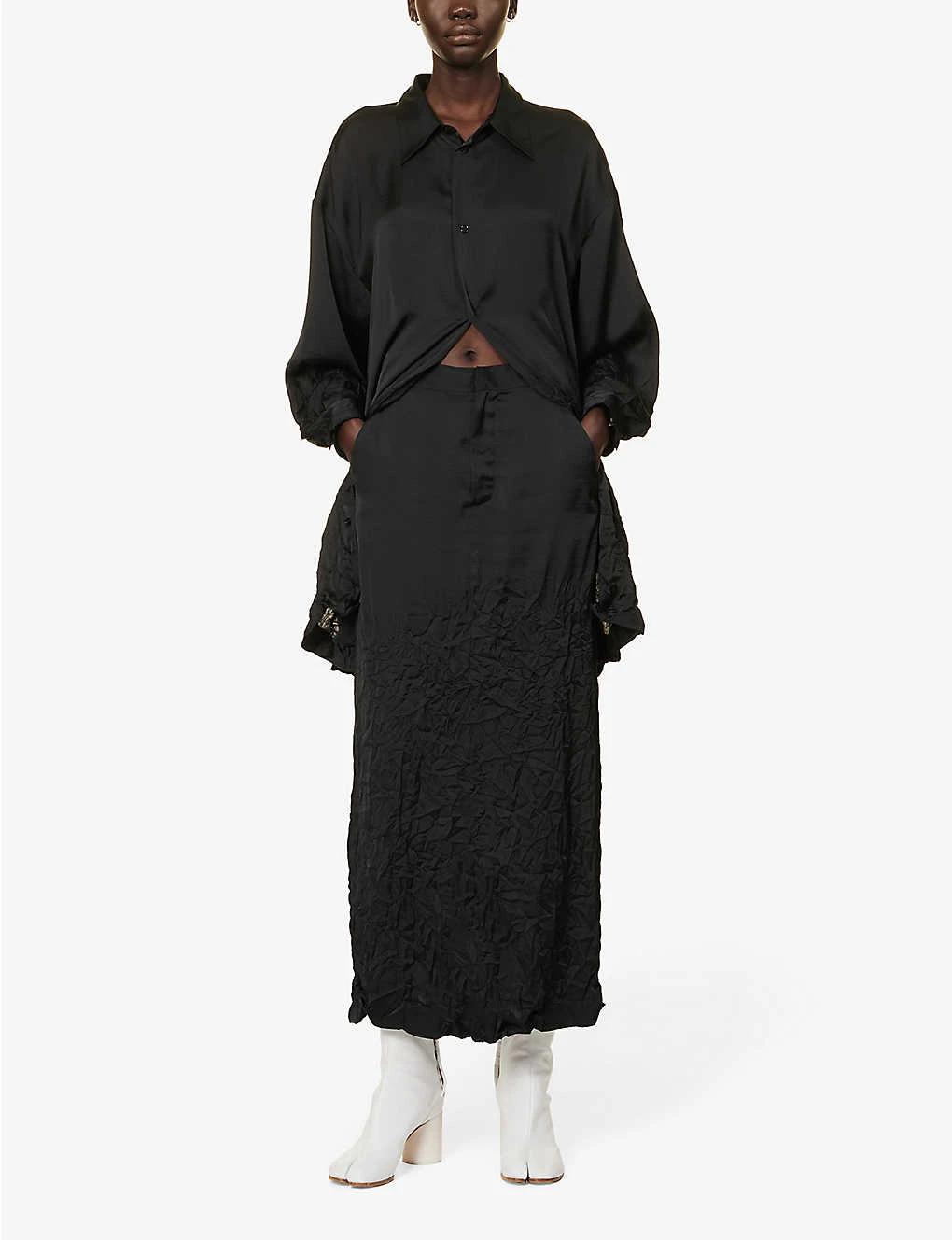 Be the first to review “MM6 Maison Margiela Crinkle-texture Mid-rise Satin Maxi Skirt” Cancel reply