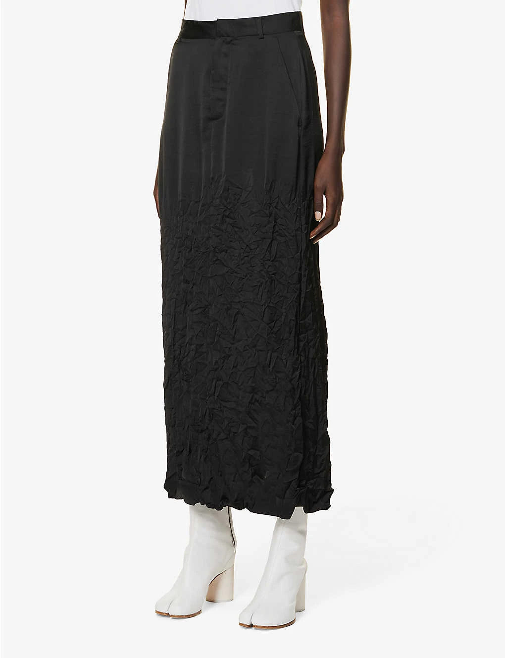 MM6 Maison Margiela Crinkle-texture Mid-rise Satin Maxi Skirt