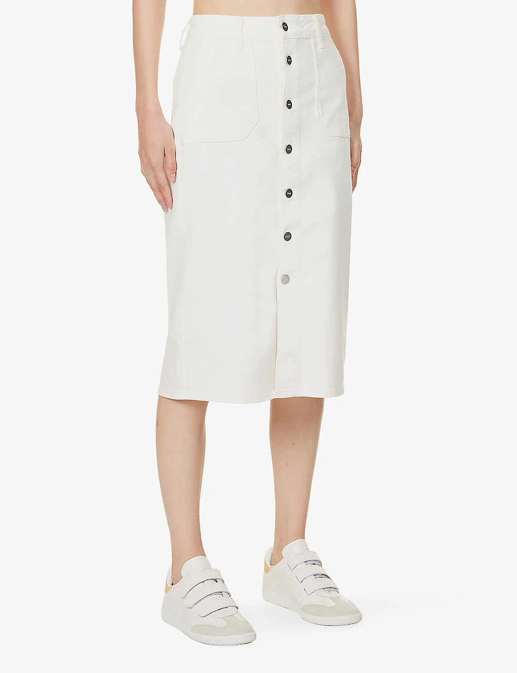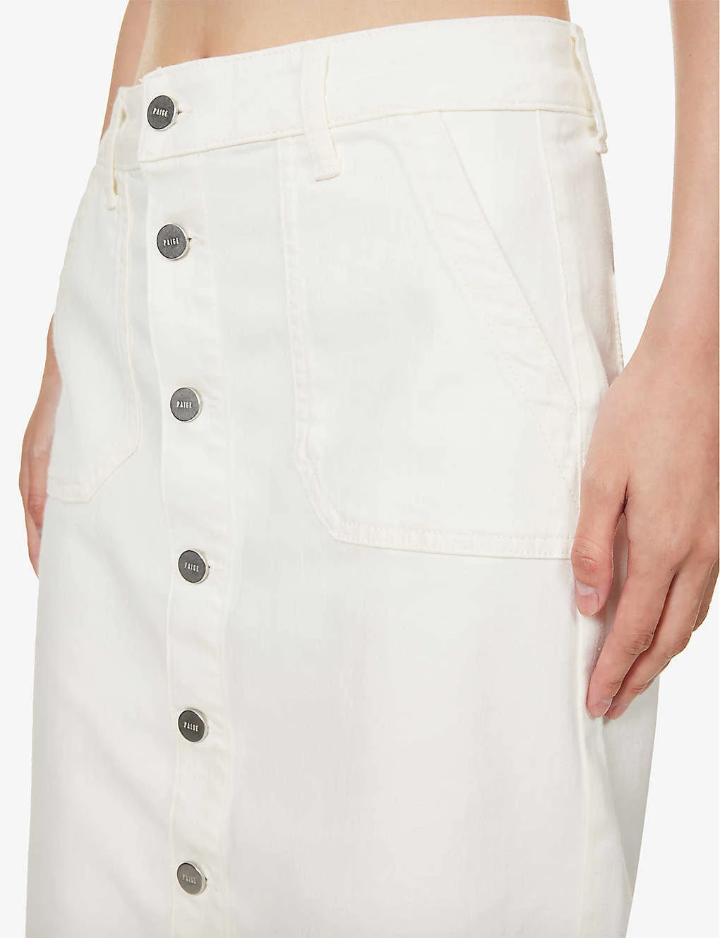 Be the first to review “Paige Meadow Brand-patch Stretch-denim Midi Skirt” Cancel reply