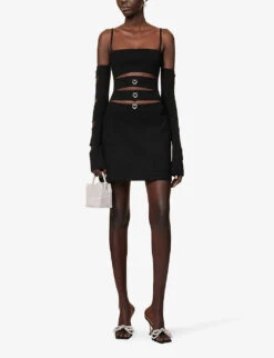 Heart Crystal-embellished Cotton Mini Skirt