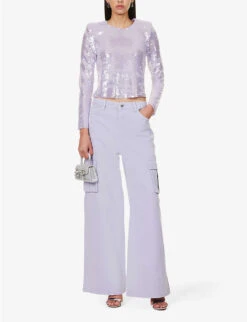 SELF PORTRAIT Long-sleeved Sequin-embellished Stretch-woven Top