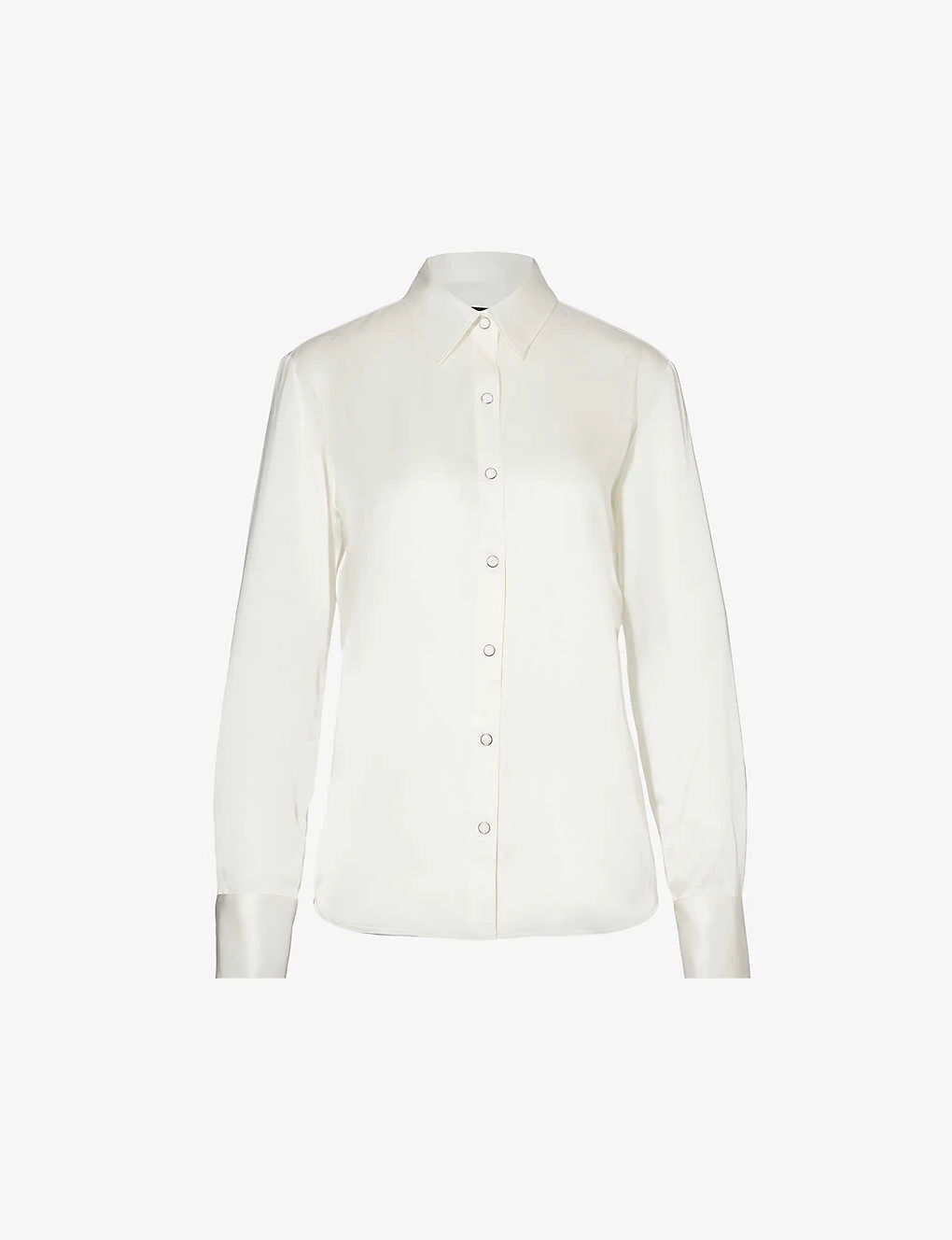 - Regular fit, collar, long sleeves, popper fastening at cuffs, satin texture, curved hem