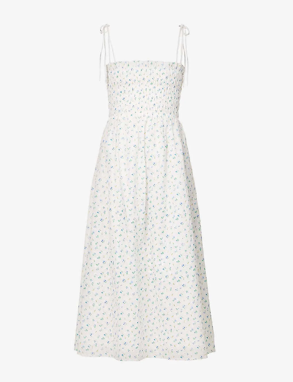 - Regular fit, square neckline, adjustable shoulder straps, shirred bodice panel, all-over embroidered floral pattern
