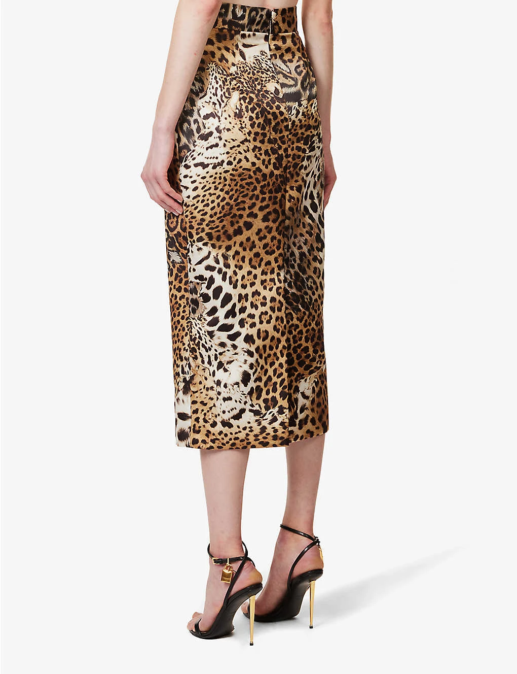 Roberto Cavalli Leopard-print High-rise Satin Midi Skirt
