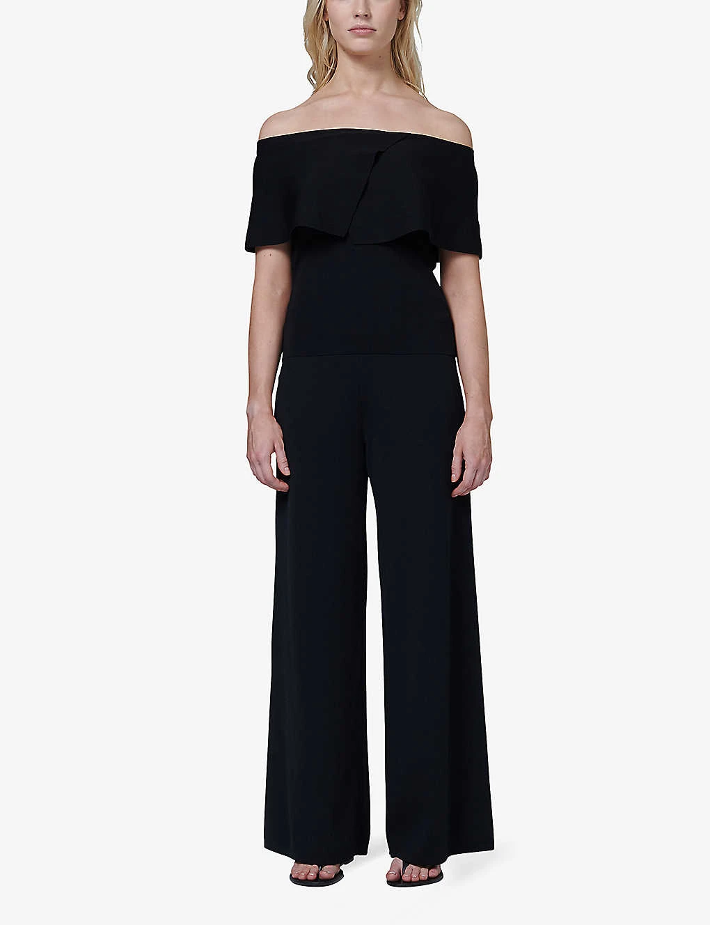 - Slim fit, sailor collar, wearable on or off the shoulder, all-over finely knitted texture