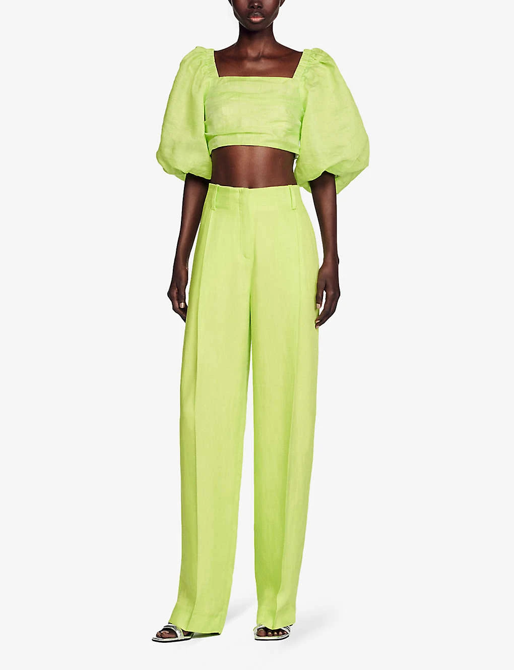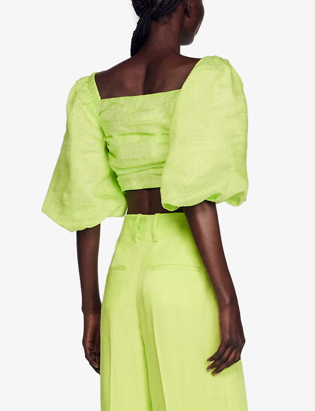 Be the first to review “Sandro Puff-sleeve Linen-blend Cropped Top” Cancel reply