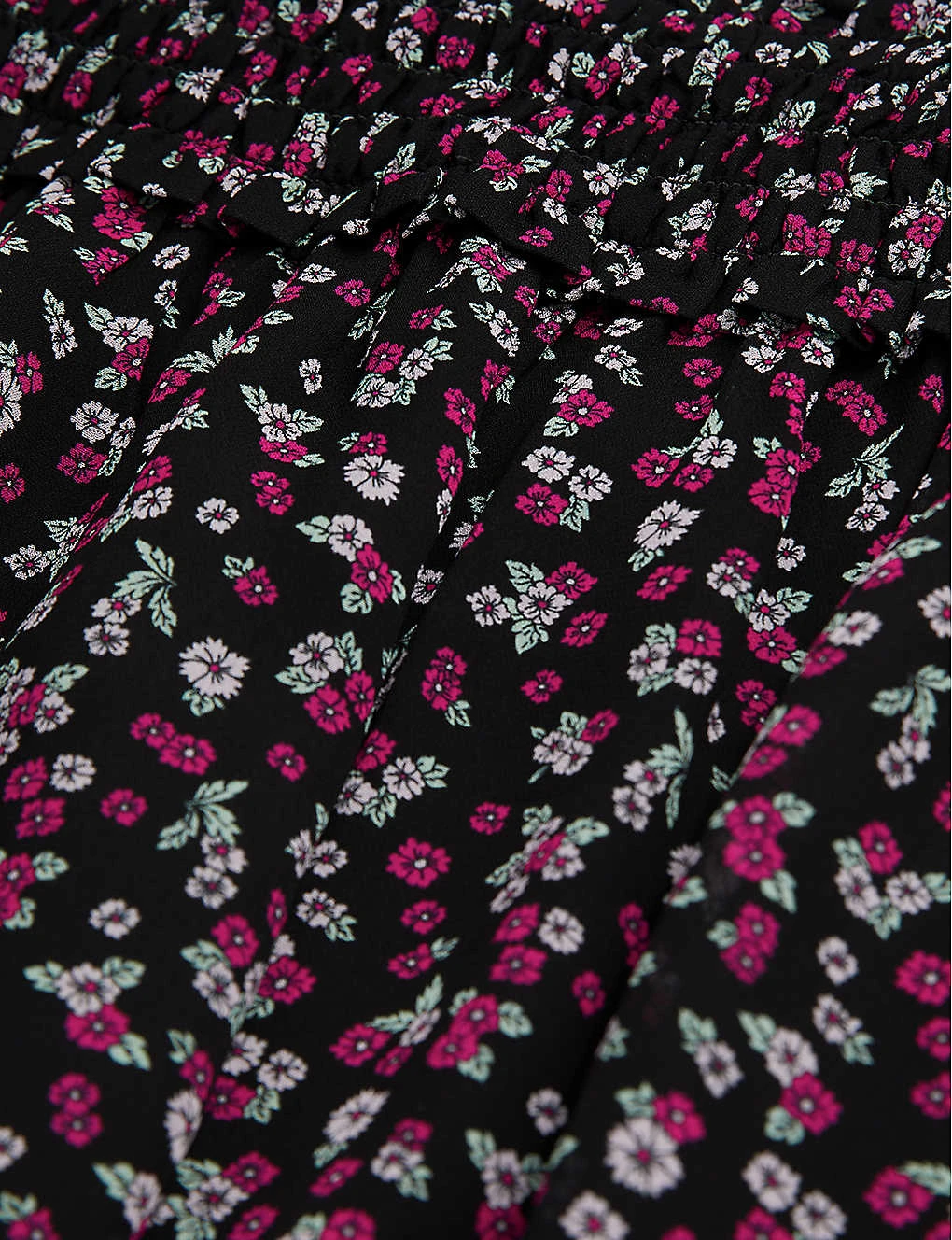 - Smocked elasticated waistband, all-over floral print, flared silhouette, mini skirt, lined