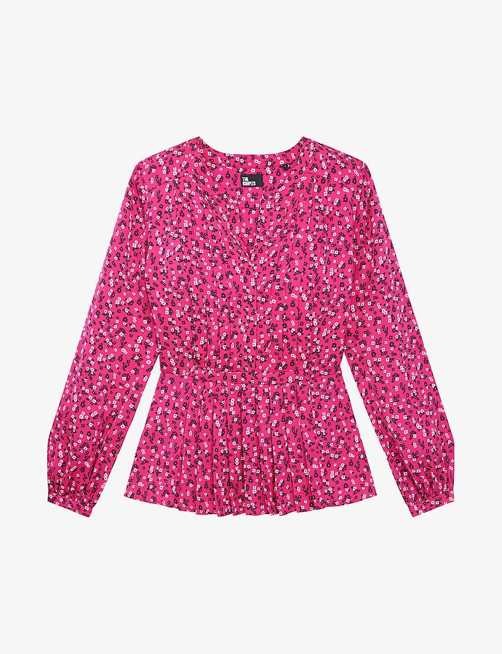 - Regular fit, V-neckline, long sleeves, pleating at front, all-over floral print