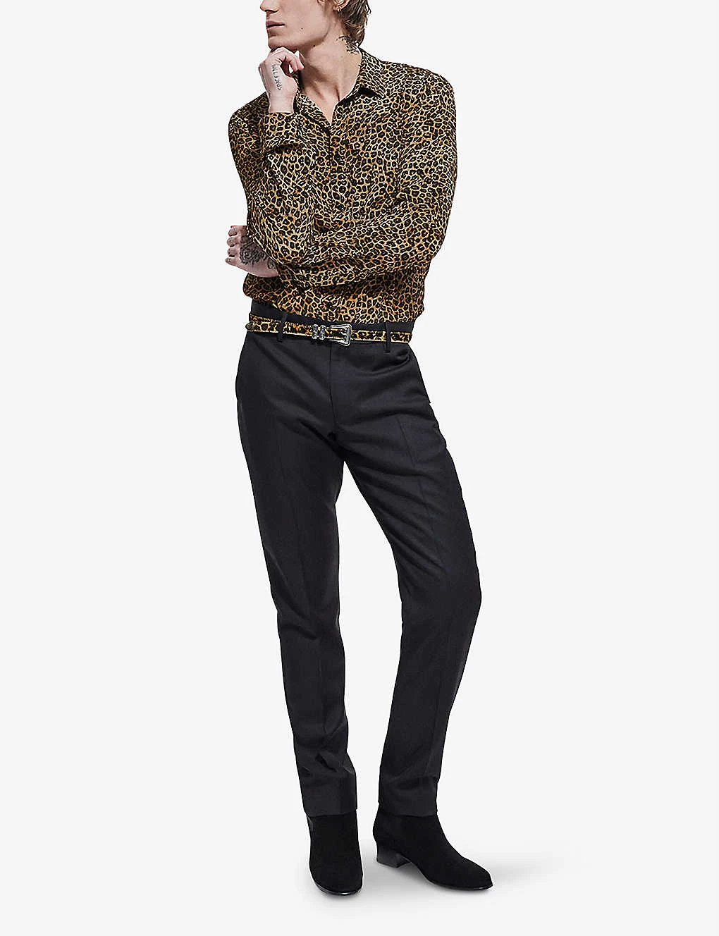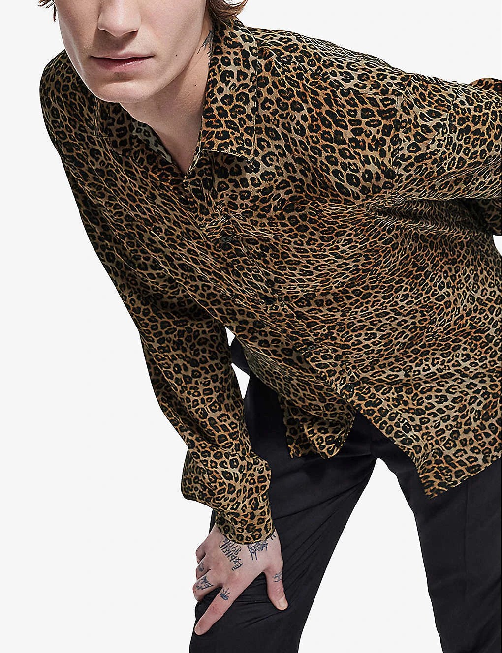 - Relaxed fit, long sleeves, classic shirt collar, all-over leopard print, front button fastening, buttoned cuffs