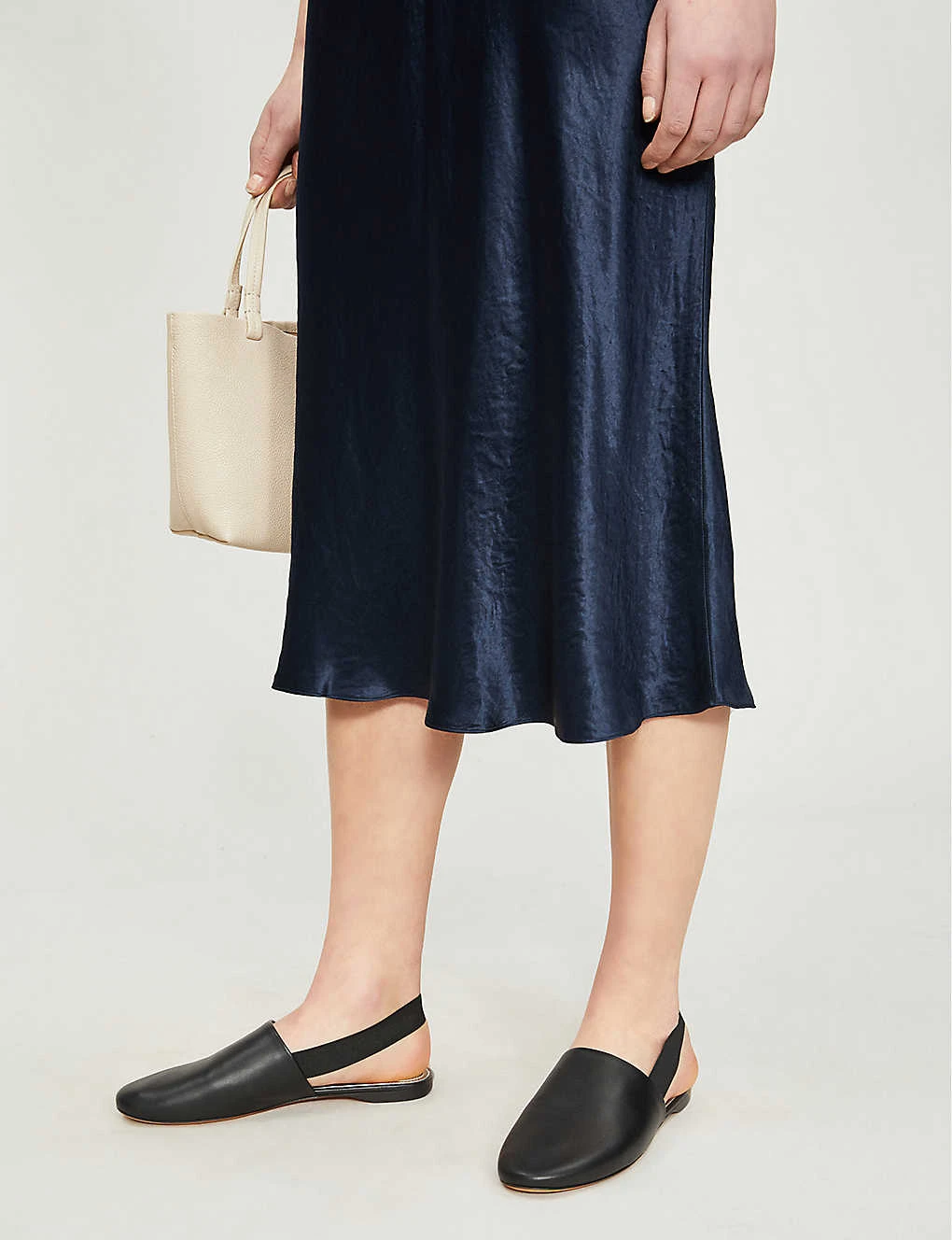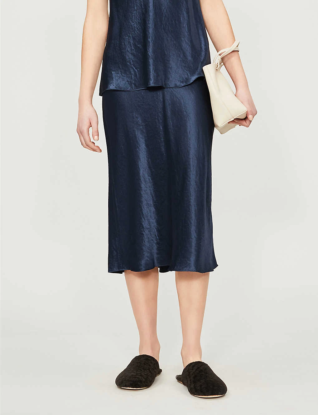 Vince Flared High-rise Crushed Satin Midi Skirt
