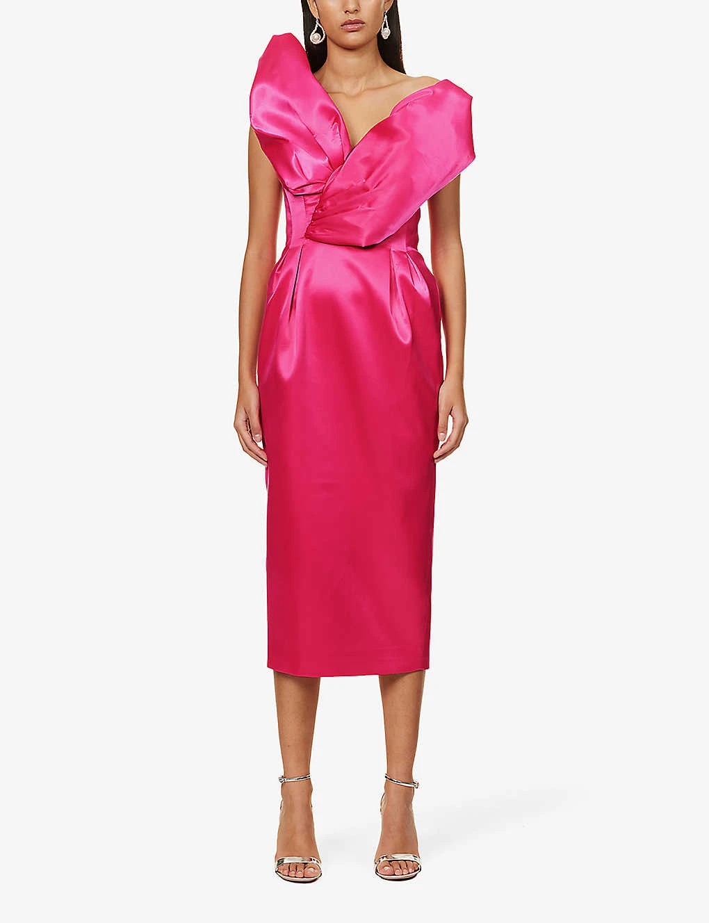 Be the first to review “Vivi Asymmetric-neck Satin Midi Dress” Cancel reply