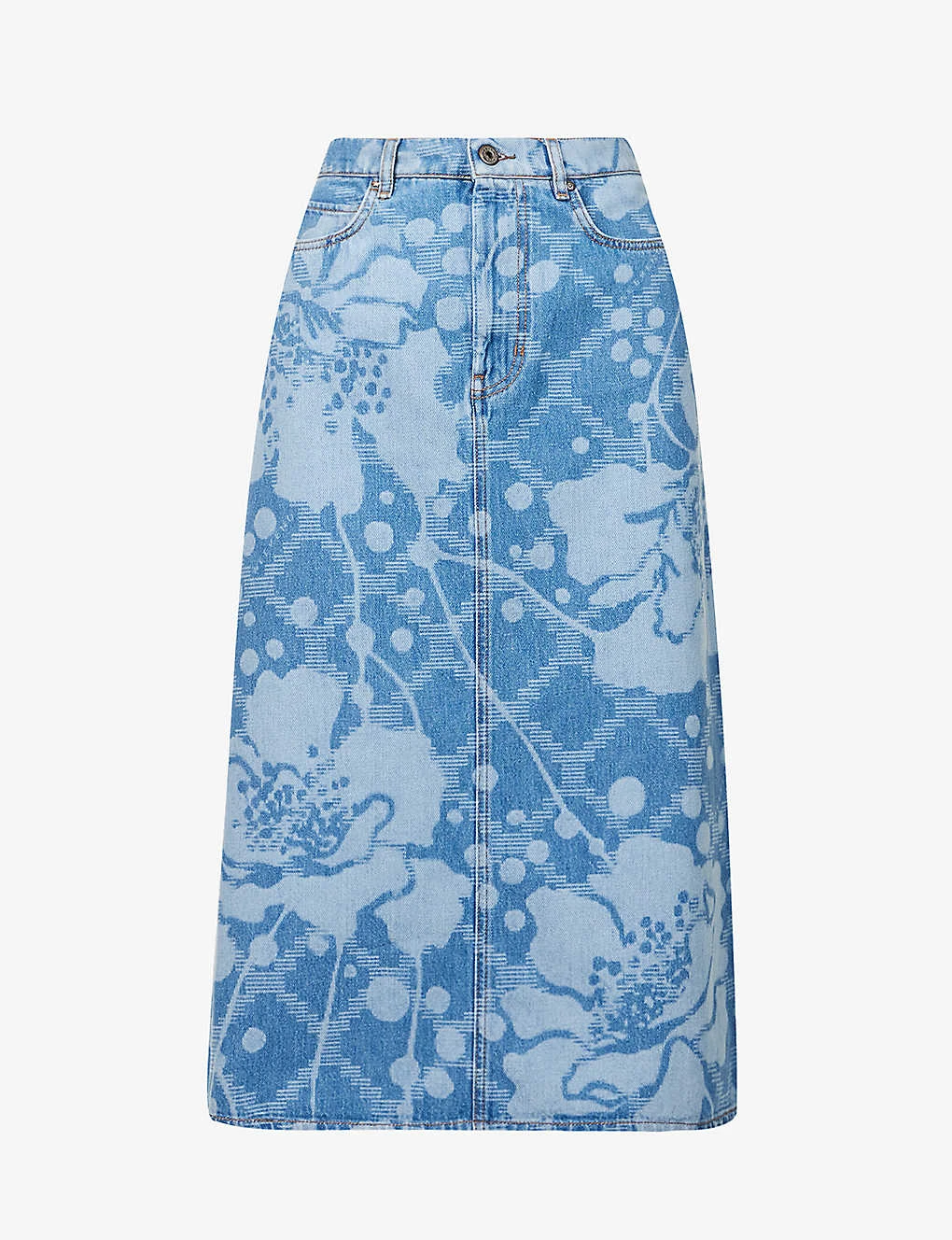 Weekend Max Mara Fonte Floral-pattern Denim Midi Skirt