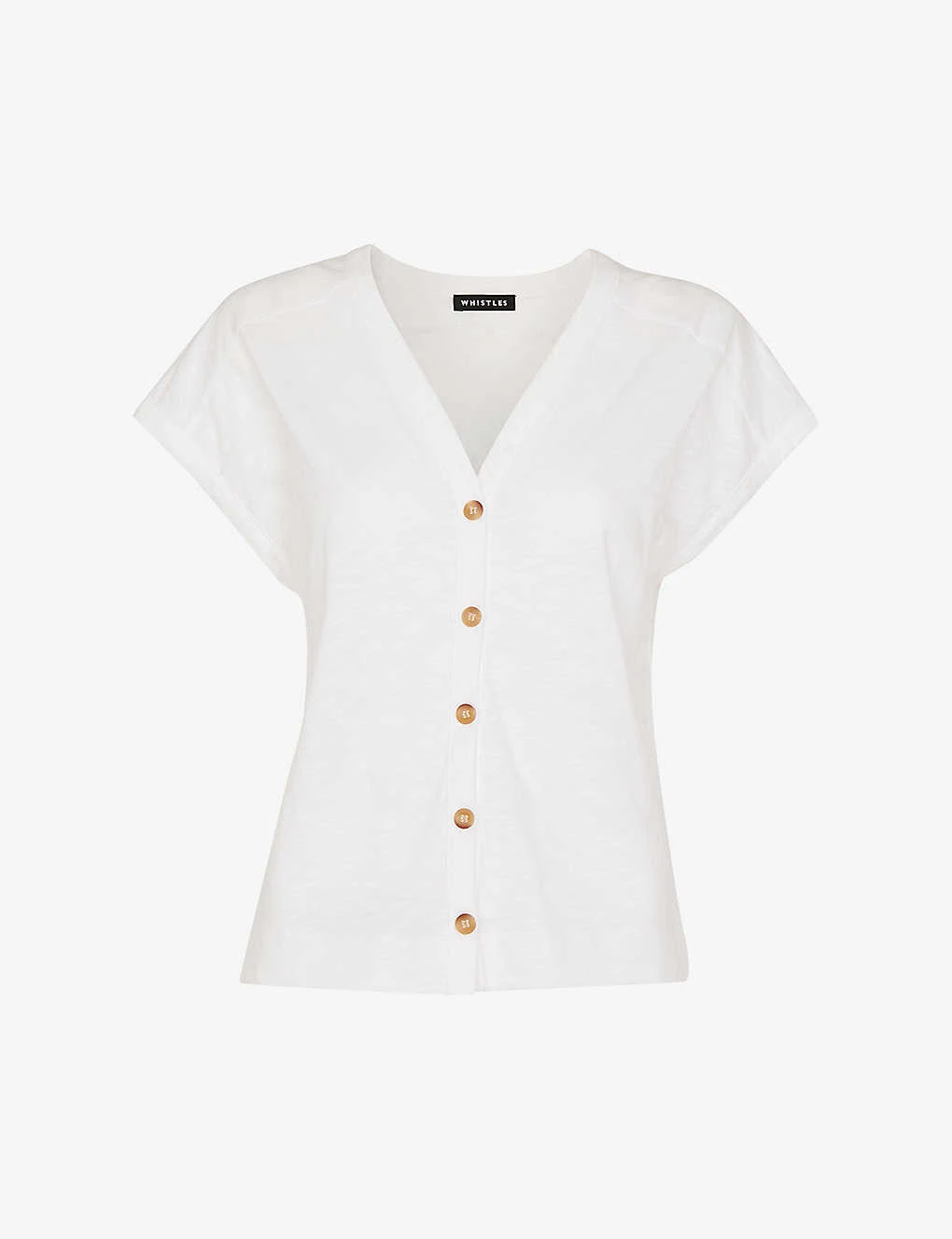 Be the first to review “Whistles Aubrie Button-through V-neck Cotton Top” Cancel reply