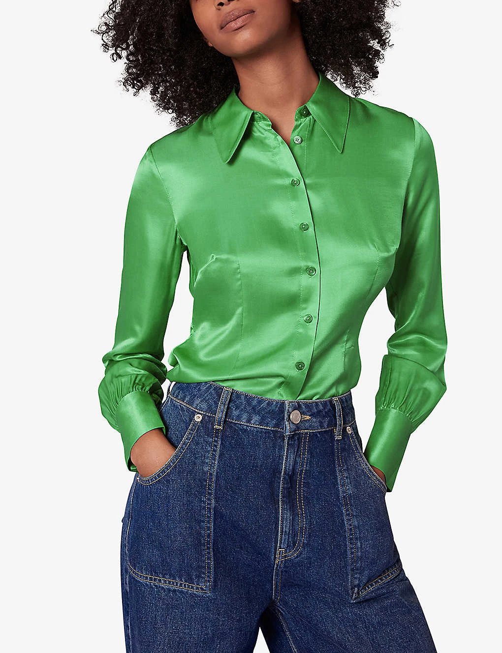 Be the first to review “Whistles Hallie Collared-neckline Silk-blend Shirt” Cancel reply