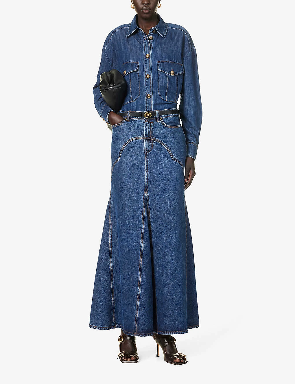 Be the first to review “Zimmermann Pleated-panel Denim Midi Skirt” Cancel reply
